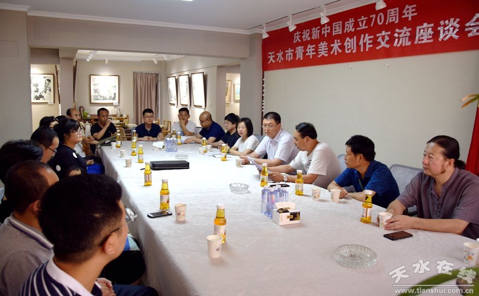 7月5日,來自天水市美術(shù)家協(xié)會(huì)、天水師院美術(shù)學(xué)院、天水市青年美術(shù)家協(xié)會(huì)及各縣區(qū)創(chuàng)作骨干參加的慶祝新中國成立70周年天水市青年美術(shù)創(chuàng)作交流座談會(huì)在天水市美術(shù)家協(xié)會(huì)創(chuàng)作基地召開。會(huì)議總結(jié)了市青年美術(shù)家協(xié)會(huì)一年來的工作,并對(duì)下一階段的工作進(jìn)行了安排部署。