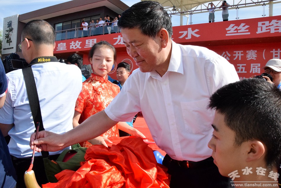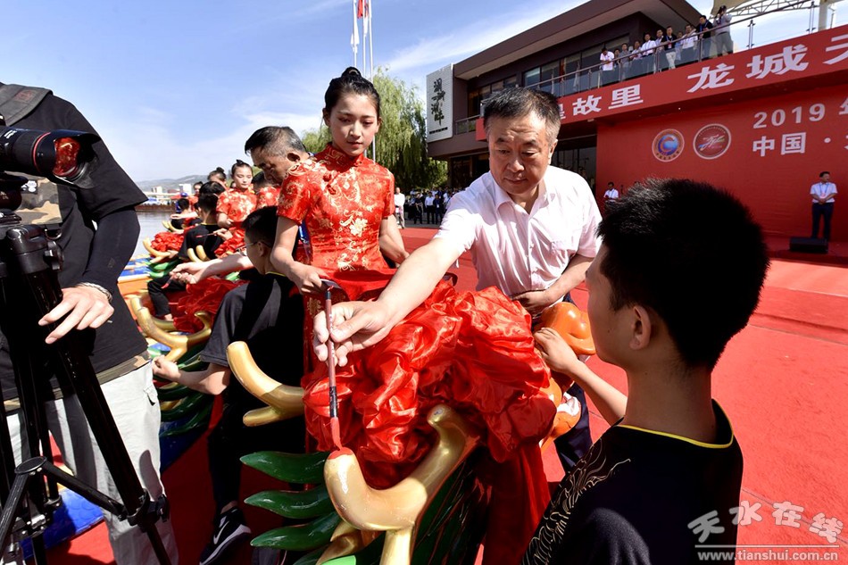 省人大常委會(huì)副主任吳明明,省政協(xié)副主席、天水市委書記王銳,市人大常委會(huì)主任蔣曉強(qiáng),市委副書記、市長王軍等省市領(lǐng)導(dǎo)為參賽龍舟點(diǎn)睛。