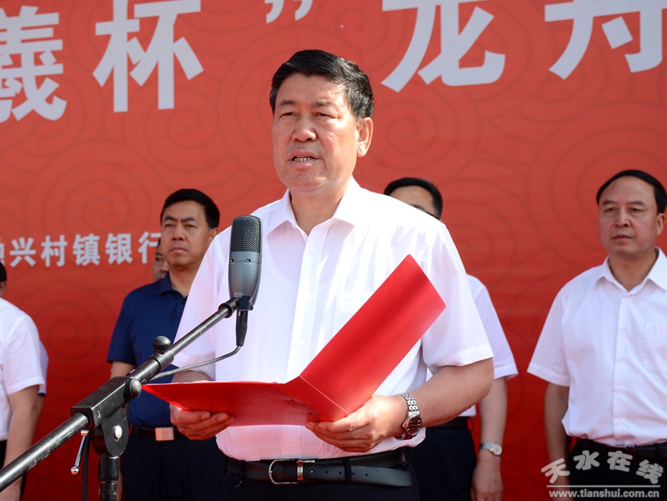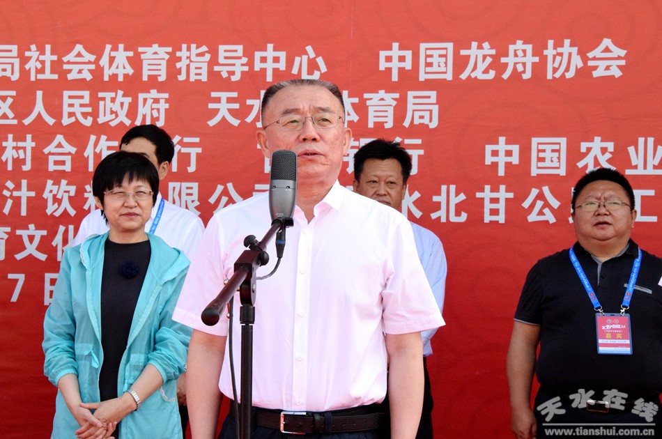 王軍在講話中說,近年來,我市依托文化旅游資源和良好的體育發(fā)展基礎(chǔ),廣泛開展群眾體育活動(dòng),積極打造精品體育賽事品牌,先后成功舉辦了全國山地自行車公開賽,中國龍舟公開賽,中國垂釣電視直播精英賽,“李廣杯”國際傳統(tǒng)射箭競標(biāo)賽等一系列國際國內(nèi)重大賽事,有力地促進(jìn)了全市體育和文化旅游深度融合發(fā)展。中國龍舟公開賽作為國內(nèi)頂級體育賽事,他的舉辦對于我們弘揚(yáng)中華民族優(yōu)秀傳統(tǒng)文化,豐富群眾體育文化生活,展示天水改革發(fā)展嶄新面貌提升天水對外知名度和影響力,加快建設(shè)絲綢之路經(jīng)濟(jì)帶宜居宜業(yè)宜游的區(qū)域性中心城市具有十分重要的意義。希望各參賽隊(duì)團(tuán)結(jié)拼搏,賽出風(fēng)格,賽出友誼,賽出水平。麥積區(qū)要精心安排部署,周密協(xié)調(diào)組織,全力服務(wù)保障,共同把這次大賽辦成弘揚(yáng)龍舟精神,推動(dòng)合作共贏的盛會(huì)。