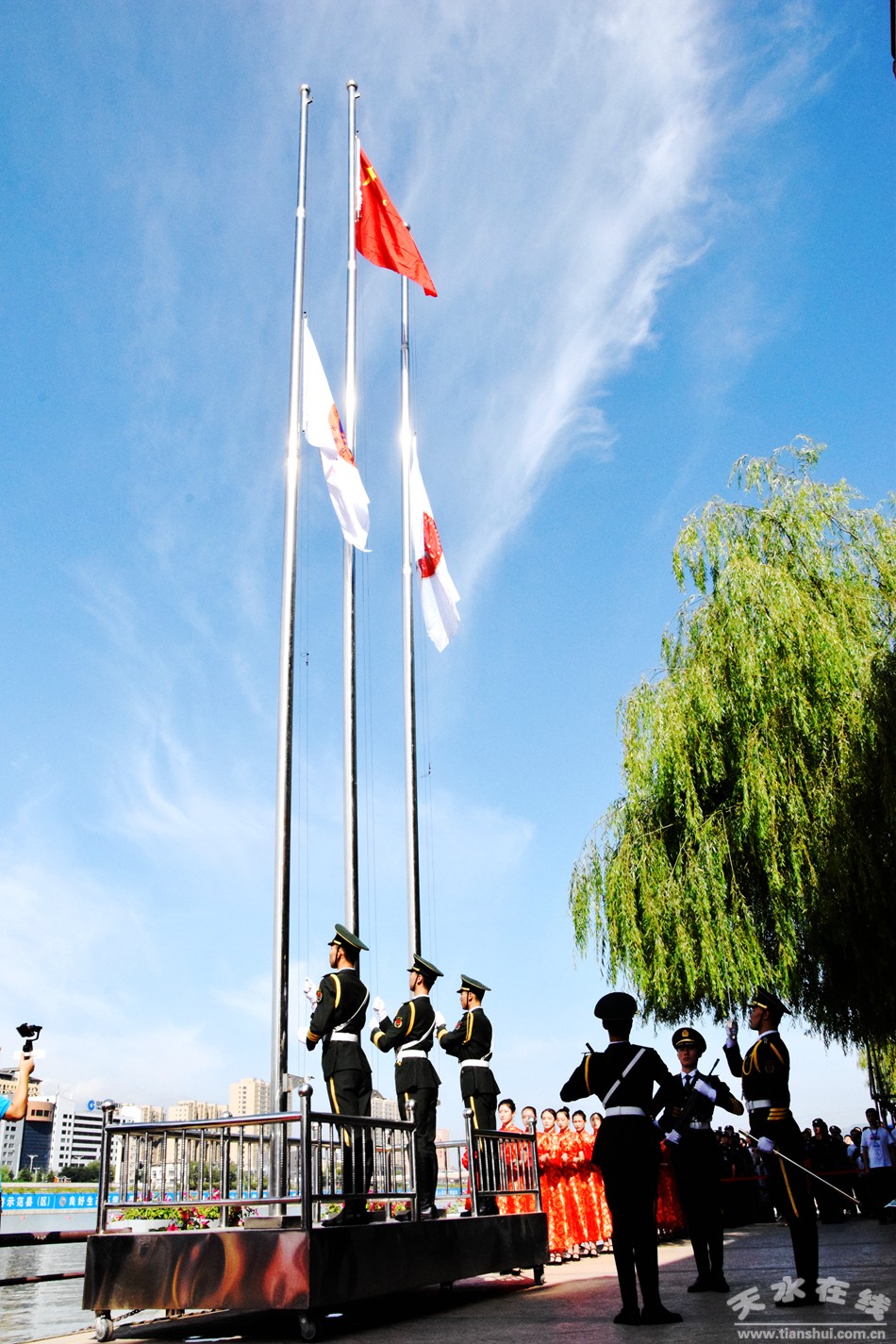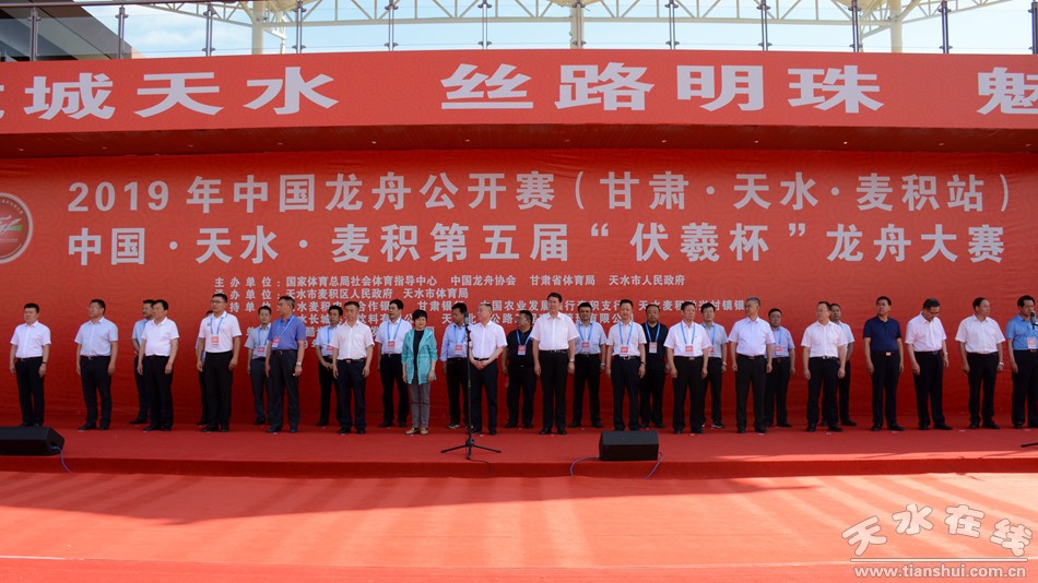 省政協(xié)副主席、天水市委書記王銳宣布2019年中國龍舟公開賽(中國·天水·麥積站)暨中國·天水·麥積第五屆“伏羲杯”龍舟大賽開幕。市委副書記、市長王軍講話。市政協(xié)副主席、麥積區(qū)委書記張智明致辭。麥積區(qū)委副書記、區(qū)長成少平主持開幕式。