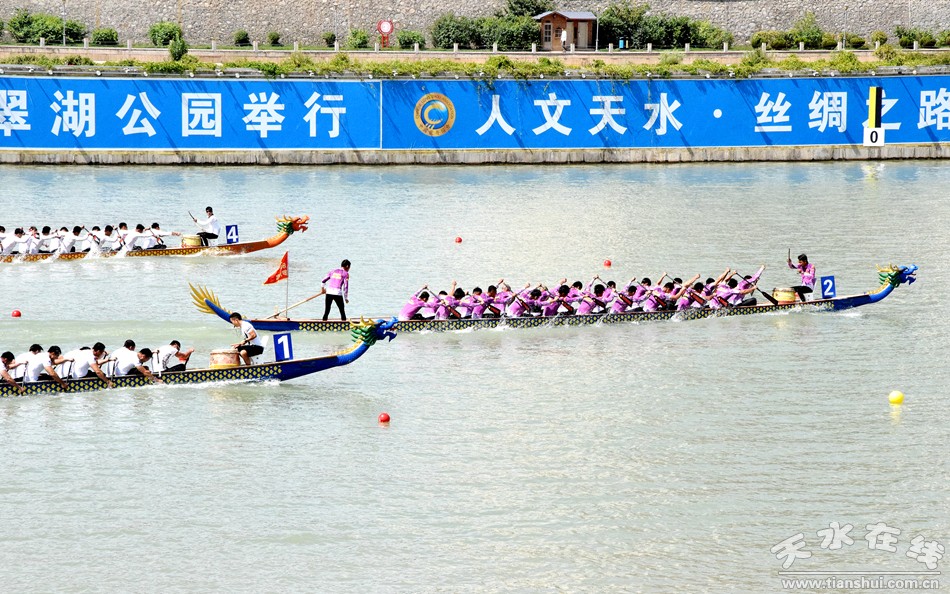 據(jù)了解,本次比賽分甲A組、甲B組、迷你龍舟組三個(gè)組別。甲A組設(shè)置22人龍舟200M、500M直道競速賽、3000M環(huán)繞賽三個(gè)項(xiàng)目;甲B組設(shè)置12人龍舟200M、500M直道競速賽兩個(gè)項(xiàng)目;迷你龍舟組設(shè)置5人制龍舟200M直道競速賽項(xiàng)目。來自全國各省、自治區(qū)、直轄市、行業(yè)體協(xié)的12支專業(yè)隊(duì)和天水市兩區(qū)五縣7支地方隊(duì)共計(jì)500余名運(yùn)動(dòng)員分別在各自相關(guān)組別展開激烈角逐。