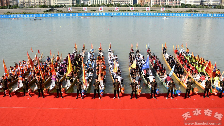 麥積翠湖碧波悠、鑼鼓催棹競龍舟。7月7日,2019年中國龍舟公開賽(中國·天水·麥積站)暨中國·天水·麥積第五屆“伏羲杯”龍舟大賽在清波蕩漾、風(fēng)景絢麗的麥積區(qū)翠湖公園龍舟賽場隆重開幕。