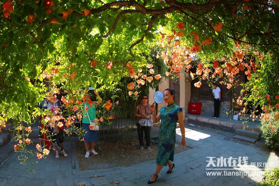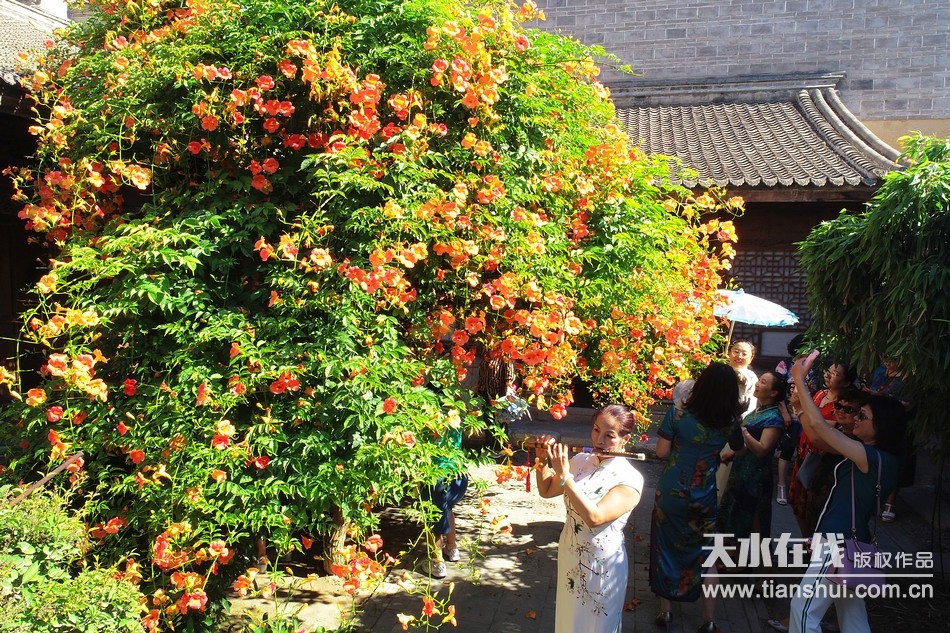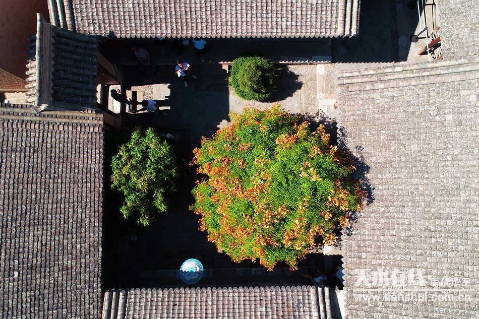 天水在線7月12日?qǐng)?bào)道 近日,位于天水南宅子凌霄院的百年凌霄樹(shù),花開(kāi)滿院,每天都吸引眾多游人參觀拍照,成為繼“黃金大道”、“玉蘭古巷”等我市“網(wǎng)紅”景點(diǎn)之后,又一新晉“網(wǎng)紅”。為此,天水在線于7月9日以標(biāo)題為“天水南宅子百年凌霄,花開(kāi)滿院,驚艷全城”進(jìn)行了報(bào)道,引發(fā)網(wǎng)民持續(xù)關(guān)注和熱議。為了讓廣大網(wǎng)友,更加領(lǐng)略四百多年古宅、古院和百年凌霄樹(shù)花開(kāi)滿院的盛景,天水在線于7月12日進(jìn)行了航拍。
