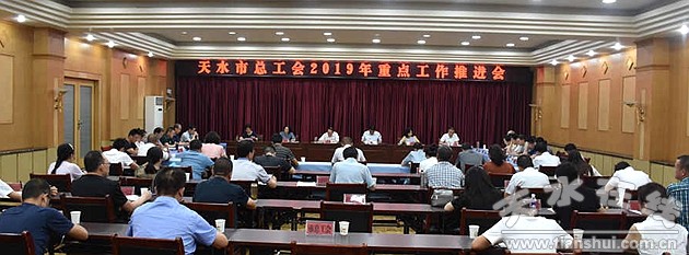 7月26日,天水市總工會黨組書記、常務(wù)副主席郭世文組織召開市總工會2019年上半年重點工作推進(jìn)會。市總在家的全體黨組成員、調(diào)研員,各縣區(qū)總工會主席、副主席、辦公室主任,全市產(chǎn)業(yè)(系統(tǒng))工會主席,部分企業(yè)工會主席以及市總機關(guān)各部室負(fù)責(zé)同志共計70余人參加會議。市總工會黨組成員、副主席王建軍同志主持會議。