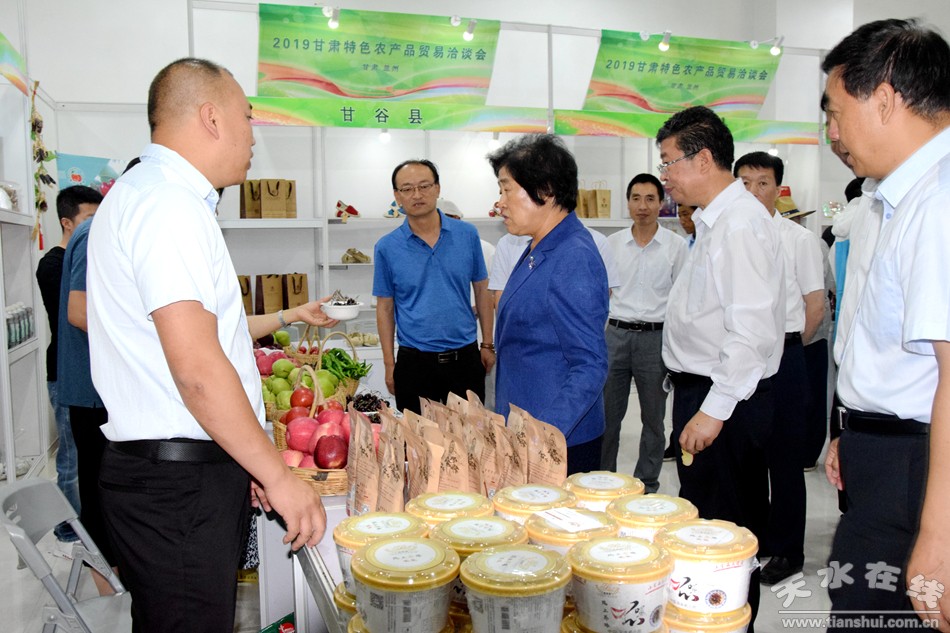 (天水市副市長(zhǎng)逯克宗了解天水農(nóng)特產(chǎn)品展銷情況)