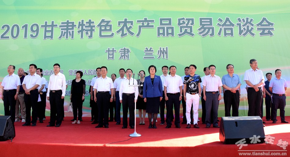 天水在線蘭州報(bào)道 7月25日,由農(nóng)業(yè)農(nóng)村部、甘肅省政府聯(lián)合主辦的2019甘肅特色農(nóng)產(chǎn)品貿(mào)易洽談會(huì)在榆中縣中國(guó)·蘭州農(nóng)產(chǎn)品交易中心拉開帷幕。省政府副省長(zhǎng)常正國(guó)、中國(guó)農(nóng)產(chǎn)品市場(chǎng)協(xié)會(huì)會(huì)長(zhǎng)張玉香出席開幕式并講話,省政府副秘書長(zhǎng)郭春旺、省農(nóng)業(yè)農(nóng)村廳廳長(zhǎng)李旺澤以及省直有關(guān)部門和各市州政府負(fù)責(zé)同志參加會(huì)議。我市副市長(zhǎng)逯克宗帶領(lǐng)我市縣區(qū)政府分管領(lǐng)導(dǎo)及市縣相關(guān)部門和部分農(nóng)業(yè)龍頭企業(yè)、合作社負(fù)責(zé)人參會(huì)參展。