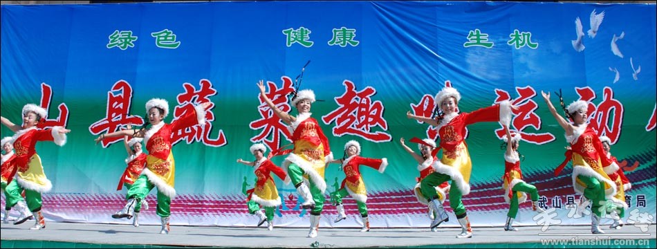 2013年6月23日,武山縣群眾文化服務(wù)中心廣場(chǎng)鼓聲隆隆,人頭攢動(dòng),融知識(shí)性、趣味性、互動(dòng)性于一體的蔬菜趣味運(yùn)動(dòng)會(huì)在這里舉行,來(lái)自全縣15個(gè)鄉(xiāng)鎮(zhèn)的農(nóng)民代表隊(duì)參與到“金色收獲”、“蔬菜轉(zhuǎn)運(yùn)”和拔河等比賽項(xiàng)目,運(yùn)動(dòng)會(huì)中以各種蔬菜為“道具”,參賽隊(duì)以代表各自鄉(xiāng)鎮(zhèn)蔬菜產(chǎn)業(yè)的黃瓜、韭菜等命名,增加了運(yùn)動(dòng)會(huì)的趣味性。