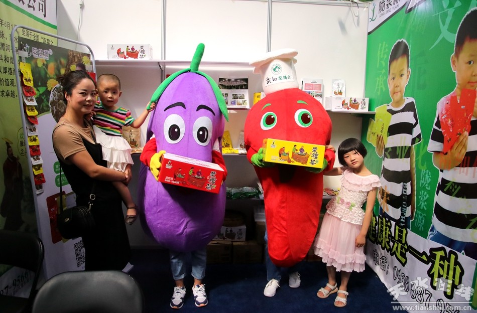 當(dāng)日,天水在線除派出強大的采訪記者外,還派出兩位小編攜帶由“小辣椒”和“小茄子”組成的“蔬菜寶寶”參加盛會。兩個“蔬菜寶寶”在主展館的驚艷亮相,受到了參會領(lǐng)導(dǎo)、客商、參展商、市民和小朋友們的歡迎,大家紛紛和兩位“蔬菜寶寶”握手、合影留念,氣氛熱烈,場面火爆,達到了為“武山菜博會”增色添彩的目的。