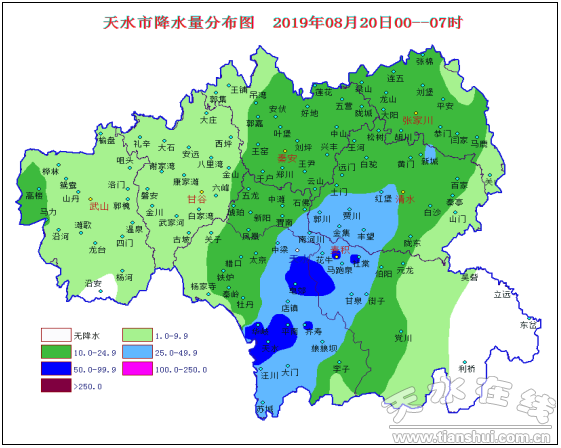 20日00時至20日7時,各地降水情況統(tǒng)計如下:
