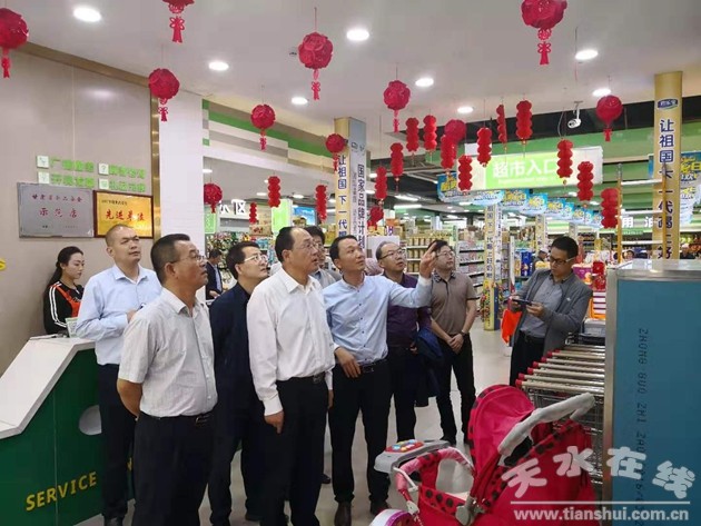 為加強商貿(mào)流通領(lǐng)域中秋和國慶節(jié)期間安全生產(chǎn)風(fēng)險防范和防災(zāi)減災(zāi)工作,9月5日,省商務(wù)廳吳鎮(zhèn)圖副廳長一行,深入我市張家川縣、清水縣超市、商場和市場等人員密集場所進行了商貿(mào)流通領(lǐng)域安全生產(chǎn)工作檢查。
