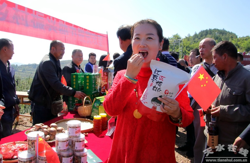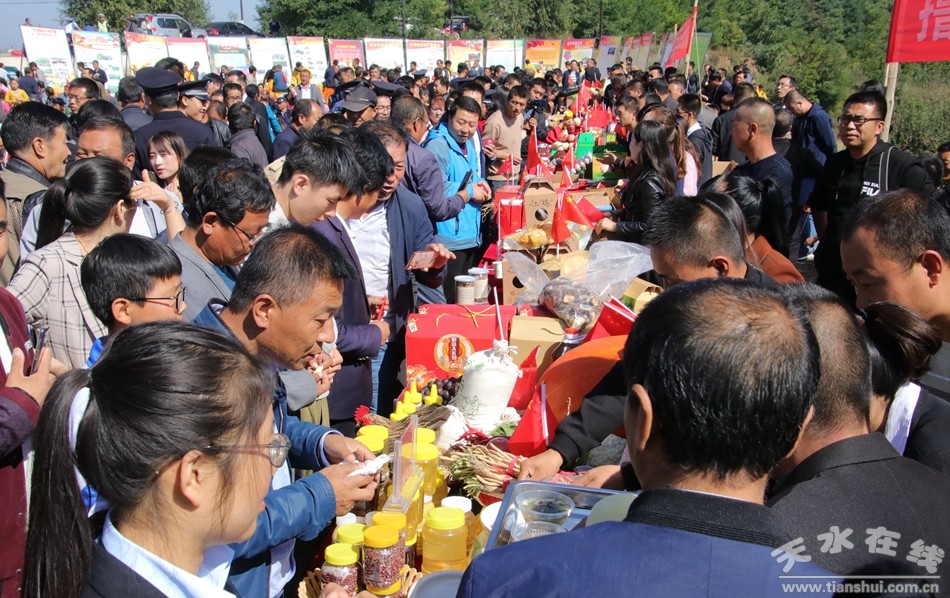 9月21日,清水縣在豐望鄉(xiāng)舉行2019中國農(nóng)民豐收節(jié)慶;顒。在慶;顒又鲿䦂,清水縣18鄉(xiāng)鎮(zhèn)的特色農(nóng)產(chǎn)品一一亮相,中國戲劇梅花獎得主、中國秦腔四小名旦、天水市秦劇團(tuán)副團(tuán)長袁丫丫應(yīng)邀參觀了展出,并對諸多美味進(jìn)行了品嘗。