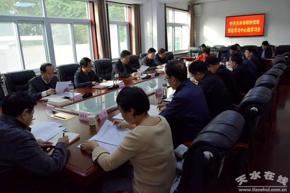 10月11日,天水市政協(xié)黨組書記、主席張明泰主持召開市政協(xié)黨組理論學(xué)習(xí)中心組學(xué)習(xí)會(huì)議。市政協(xié)黨組成員唐宏偉、劉鋒、賈忠慧出席會(huì)議。市政協(xié)副主席屈光平列席會(huì)議。