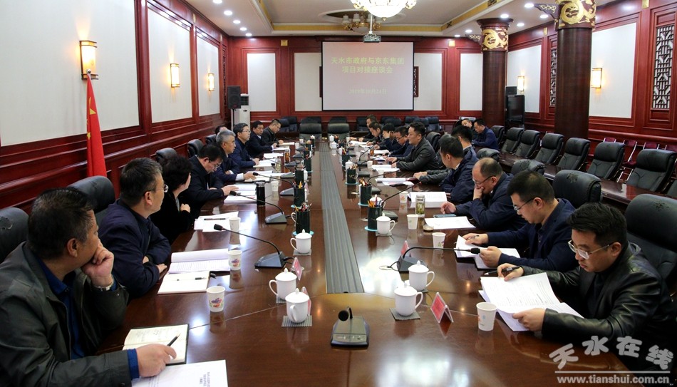 10月24日,應(yīng)天水市政府邀請(qǐng),京東集團(tuán)西北分公司副總經(jīng)理李大爽、京東集團(tuán)西北分公司方案實(shí)施總監(jiān)張桐來(lái)天水投資考察項(xiàng)目并參加天水市政府與京東集團(tuán)項(xiàng)目對(duì)接座談會(huì)。市委常委、常務(wù)副市長(zhǎng)趙四輩,市委常委、副市長(zhǎng)劉驍出席會(huì)議。秦州區(qū)政府、麥積區(qū)政府、市招商局等縣區(qū)、部門負(fù)責(zé)人參加會(huì)議。