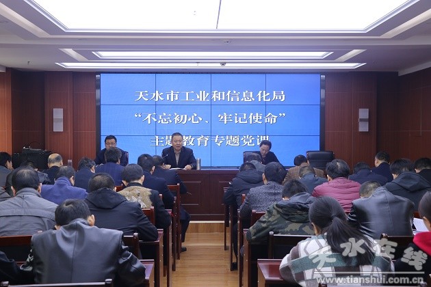 10月24日下午,天水市工信局舉行“不忘初心、牢記使命”主題教育專題黨課,局黨組書記、局長何曉斌以《堅守初心使命 忠誠干凈擔(dān)當(dāng) 全面推動新時代工業(yè)經(jīng)濟(jì)高質(zhì)量發(fā)展》為主題作專題黨課輔導(dǎo)報告。局黨組副書記蔡全增主持會議,機(jī)關(guān)和所屬事業(yè)單位全體干部職工現(xiàn)場聆聽了黨課。市委主題教育第六指導(dǎo)組組長、市檔案局副局長盧芳到會指導(dǎo)。