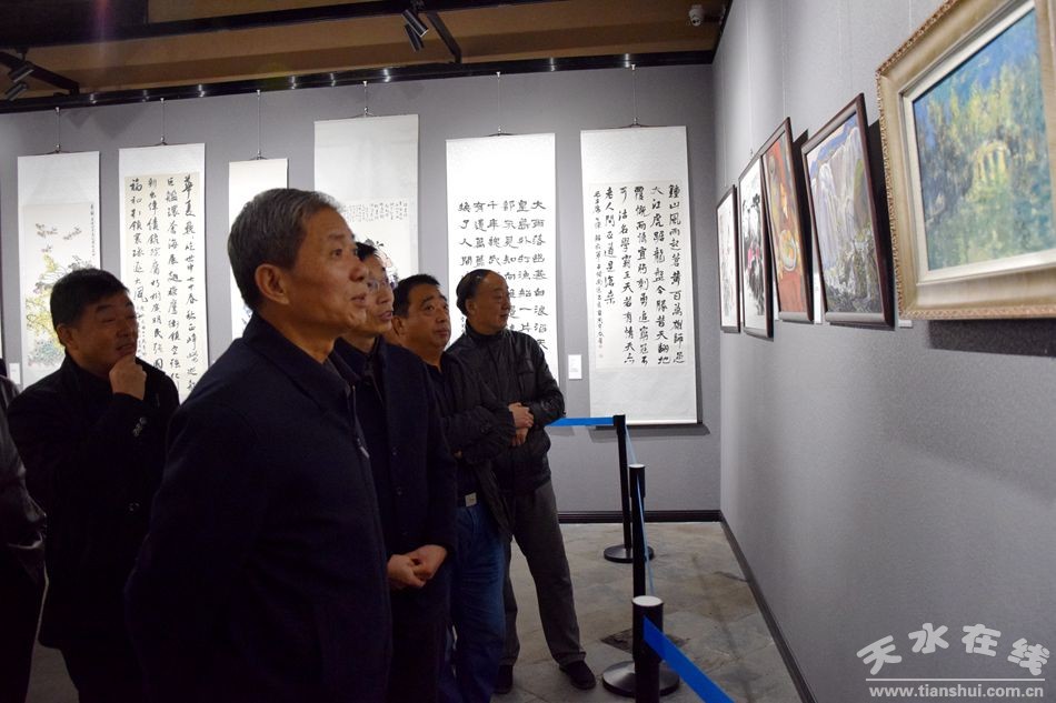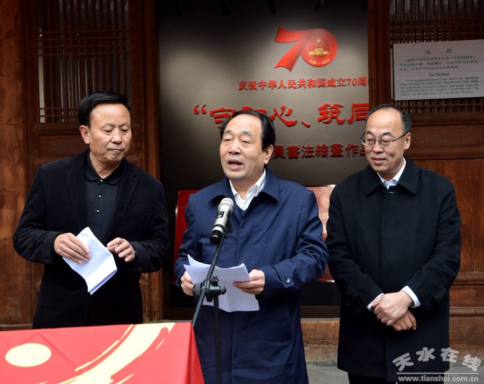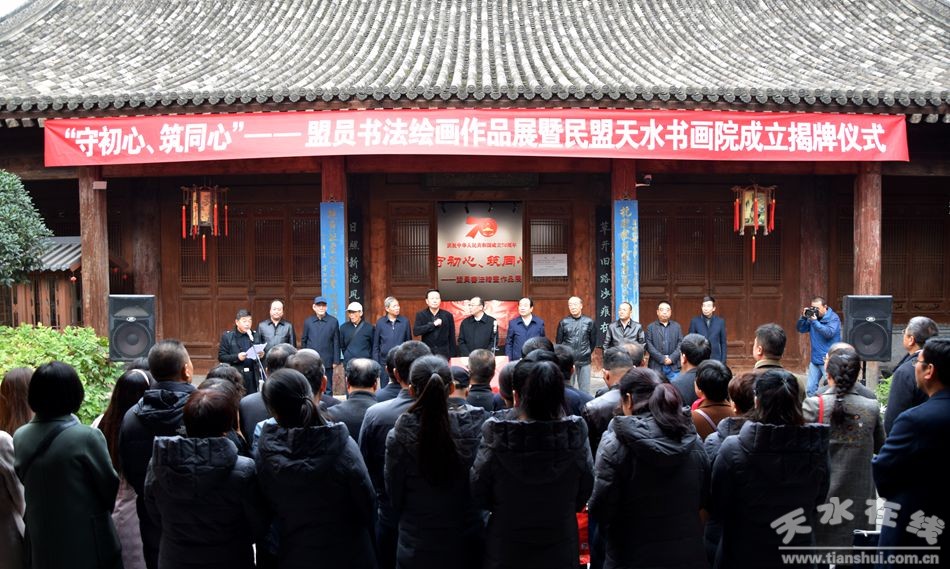 10月25日,由民盟天水市委、天水市書法家協(xié)會(huì)主辦,天水市博物館承辦的慶祝中華人民共和國成立70周年“守初心、筑同心”——盟員書法繪畫作品展在天水北宅子隆重開展,民盟天水書畫院同時(shí)成立揭牌。
