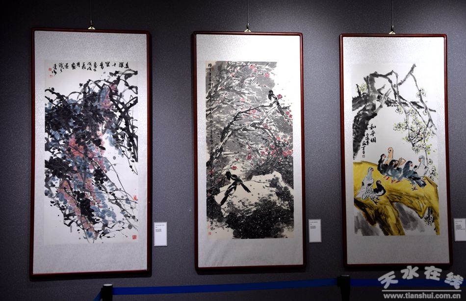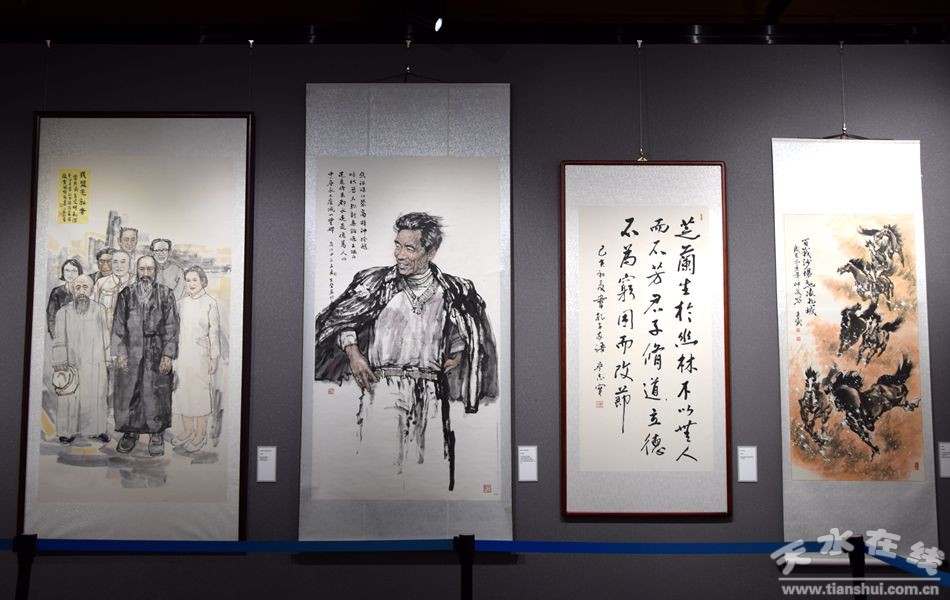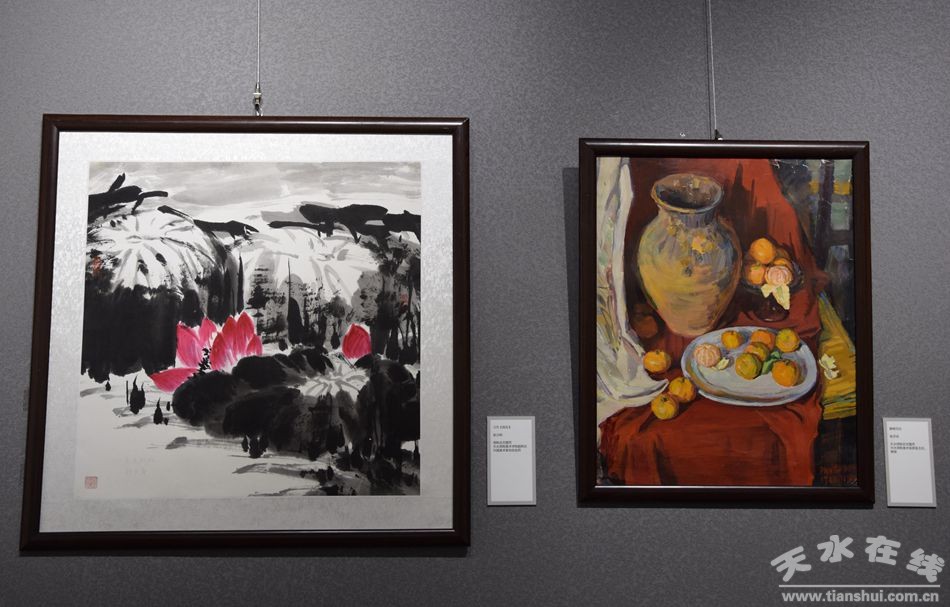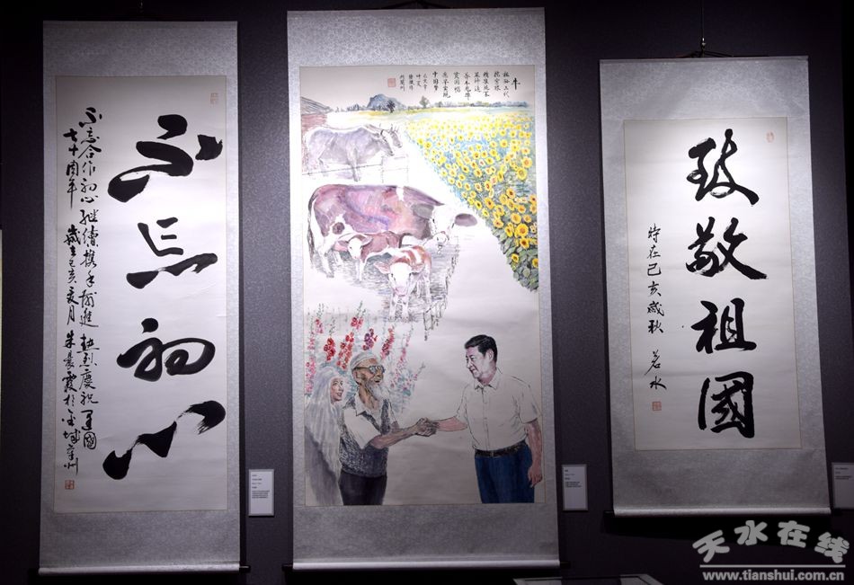 此次展出的藝術(shù)作品是54位盟員書畫家緣于文化擔(dān)當(dāng)和使命擔(dān)當(dāng),欲報(bào)國以丹心,獻(xiàn)禮書畫的集中體現(xiàn)。共展出作品80余幅,以天水民盟成員為主,又特邀民盟中央美院、民盟甘肅省書畫院名家作品20余幅,包括國畫、油畫、水粉、書法等藝術(shù)種類,熱情謳歌了新中國成立70周年來取得的輝煌成就和巨大變化,表達(dá)了對偉大祖園的美好祝福。