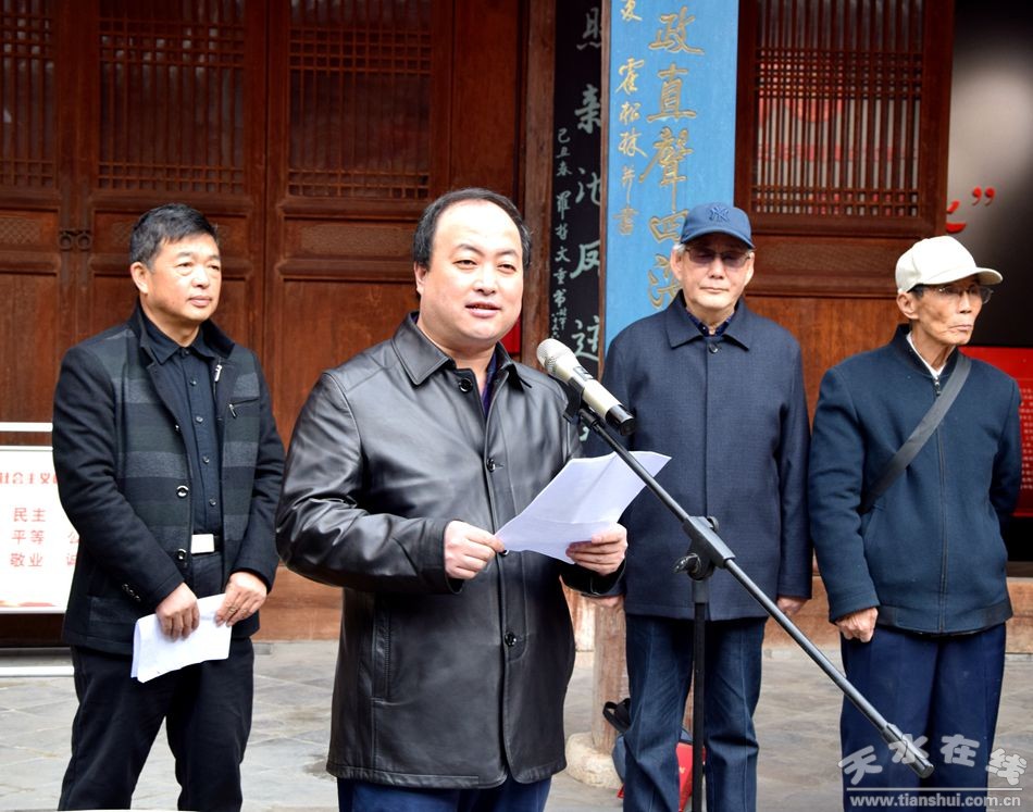 (民盟甘肅省委副主委薛德勝為民盟天水書畫院成立揭牌)