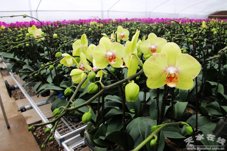 12月14日,天水在線走進(jìn)位于清水縣永清鎮(zhèn)溫溝村的清水縣花卉產(chǎn)業(yè)扶貧示范園采訪。當(dāng)日,花卉園的仙客來、蝴蝶蘭、玫瑰花、杜鵑花、繡球花、桂花、貓眼、馬蹄蓮等86種花卉花香撲鼻、花開正艷,已經(jīng)全面上市銷售。2020,已經(jīng)向我們走來。清水縣農(nóng)發(fā)公司歡迎您購買鮮花,迎接新年的到來。(清水農(nóng)發(fā)銷售熱線: 0938-7161539 18393459888)