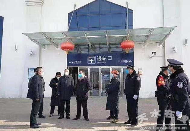 (天水市委常委、市紀(jì)委書記、市監(jiān)委主任郝覺民在張家川火車站檢查疫情防控工作)