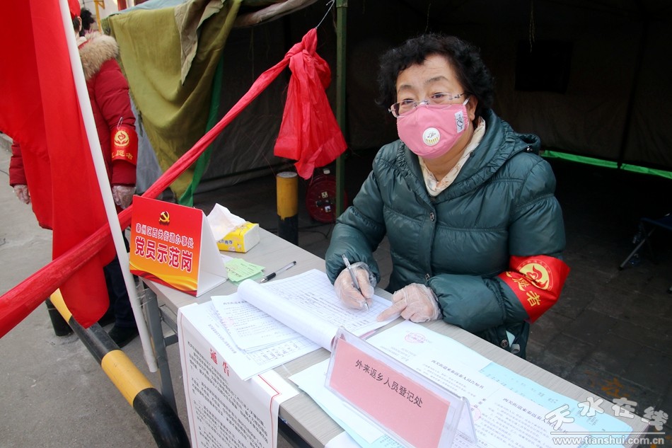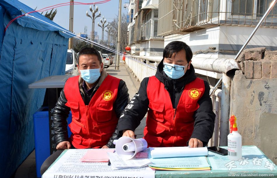 ▲西關(guān)街道辦事處解放路社區(qū)務(wù)農(nóng)巷疫情聯(lián)防聯(lián)控監(jiān)測點(diǎn)秦州區(qū)珍稀動物保護(hù)局干部王浪