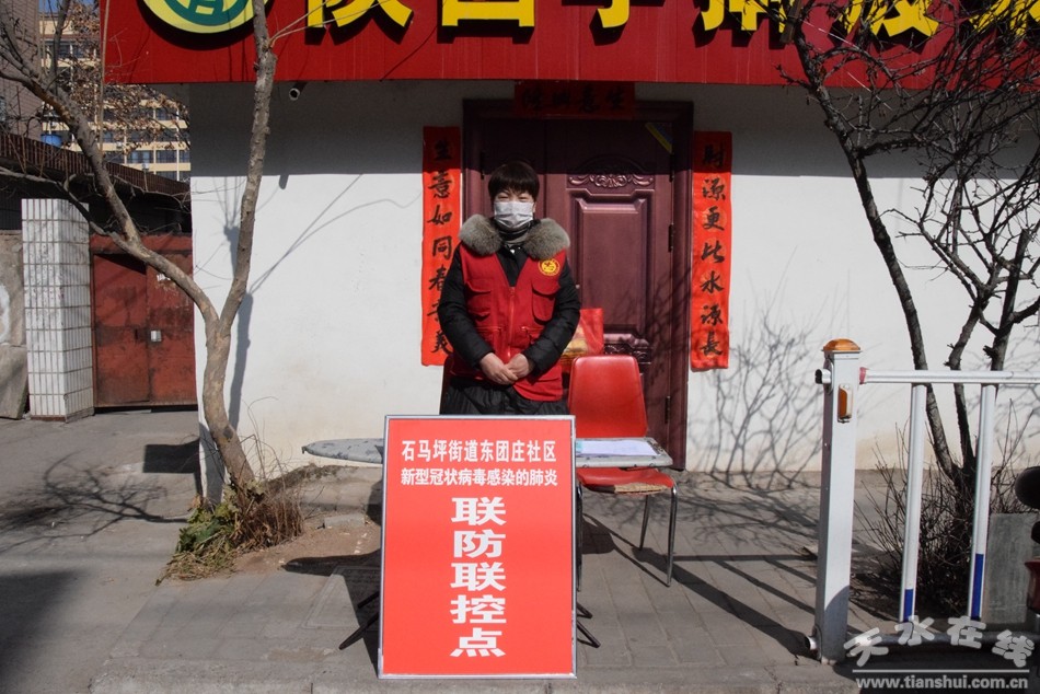 ▲石馬坪街道辦事處東團(tuán)莊社區(qū)三無小區(qū)防疫監(jiān)控點(diǎn)社區(qū)志愿者安曉平