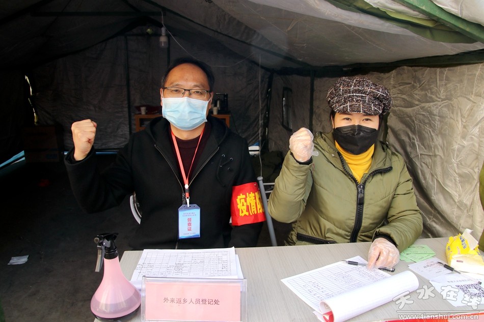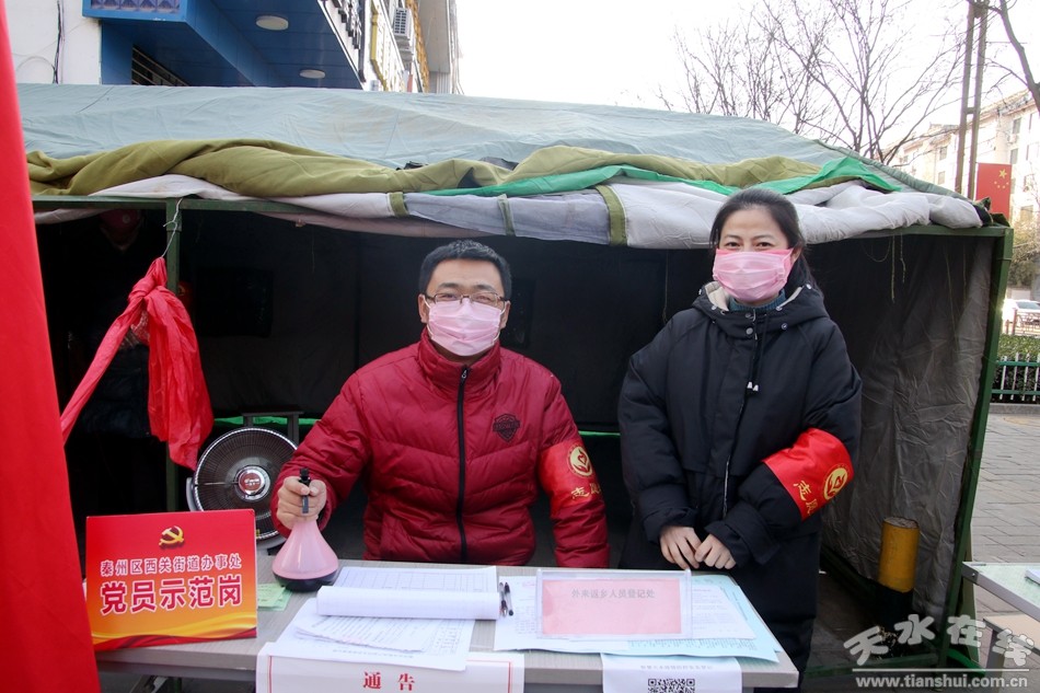 ▲西關(guān)街道辦事處自治巷社區(qū)忠義巷疫情聯(lián)防聯(lián)控監(jiān)測點(diǎn)工作人員張文龍、李喜琴