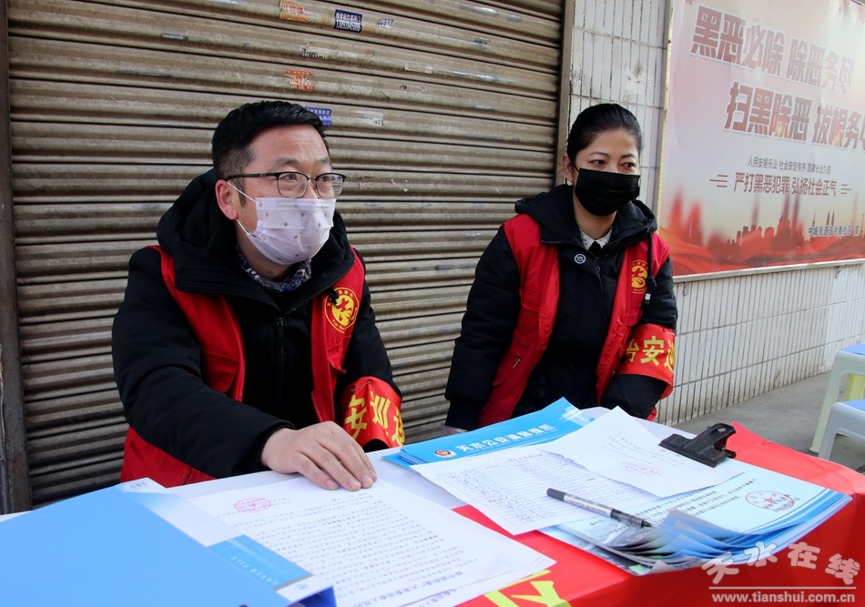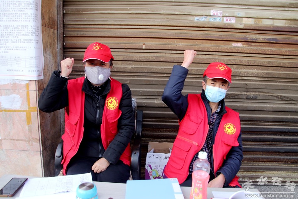▲中華西路步行街西口疫情防控宣傳點(diǎn):秦州區(qū)環(huán)衛(wèi)治理中心大城區(qū)黨支部管理員曹小英、張麗芳