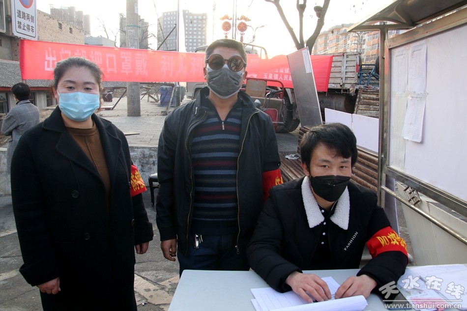 ▲玉泉鎮(zhèn)堅家河村疫情聯(lián)防聯(lián)控監(jiān)測點(diǎn)值班村民王明明、胡娟娟、李子午