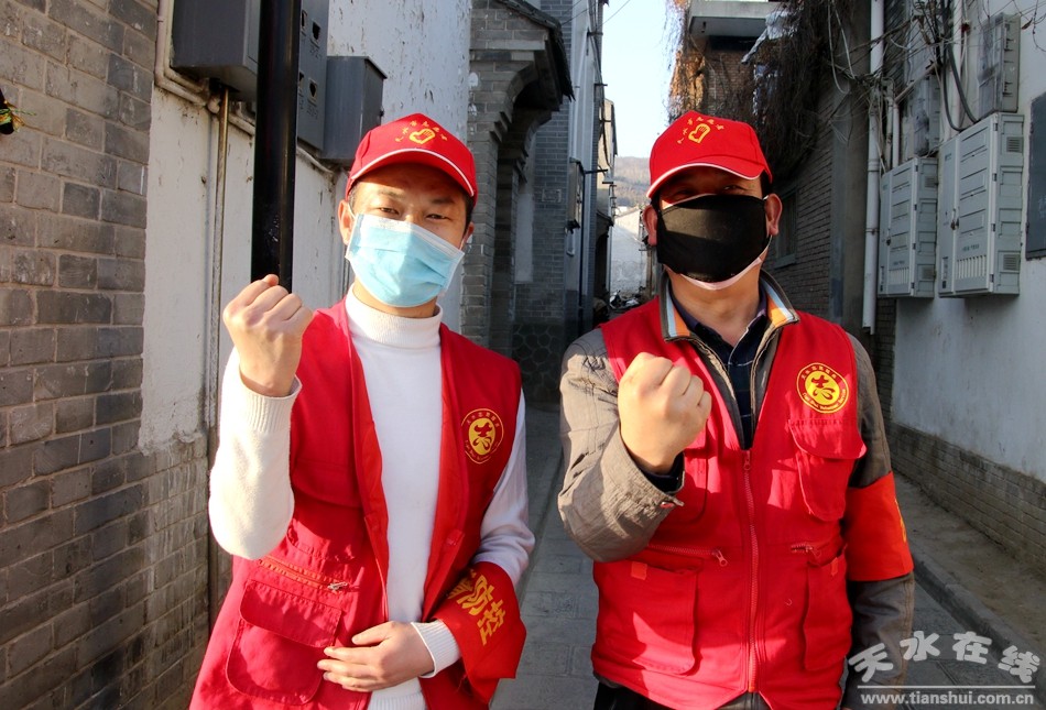 ▲西關(guān)街道辦事處聚寶盆社區(qū)棗園巷疫情聯(lián)防聯(lián)控點(diǎn)志愿者李曉軍、王正綱