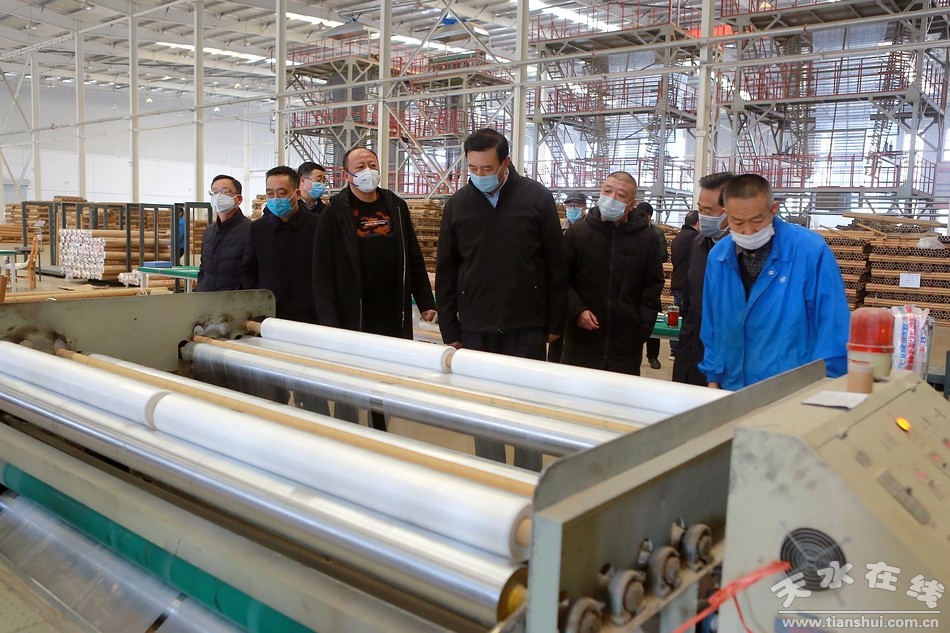 在天寶塑業(yè),趙衛(wèi)東詢問了該企業(yè)復(fù)工復(fù)產(chǎn)和生產(chǎn)經(jīng)營情況,他要求,武山縣委縣政府要主動靠前做好服務(wù),盡心盡力協(xié)調(diào)解決企業(yè)在復(fù)工復(fù)產(chǎn)過程中遇到的困難和問題,做好各類生產(chǎn)要素供應(yīng)保障,在用工等方面加大支持力度,確保企業(yè)復(fù)工復(fù)產(chǎn)平穩(wěn)有序。