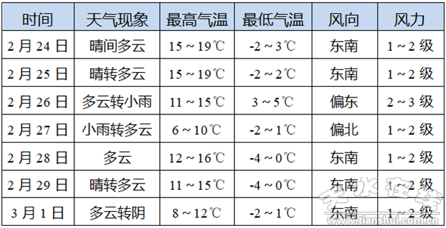 26~27日我市有小雨(雪)天氣
