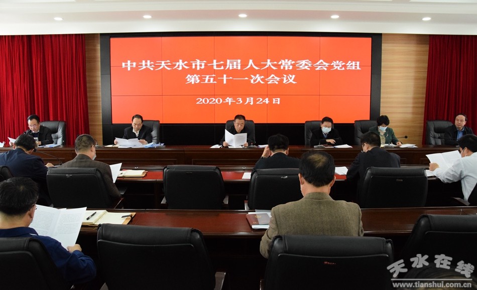 3月24日,天水市人大常委會黨組書記蔣曉強主持召開市七屆人大常委會黨組第五十一次會議。市人大常委會黨組副書記宋建平,黨組成員王曉琴、楊永暉、楊坤出席會議,市人大常委會副主任安志宏列席會議。