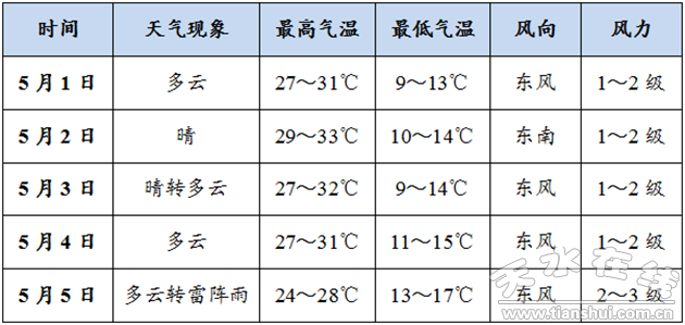 “五一”期間我市以多云為主
