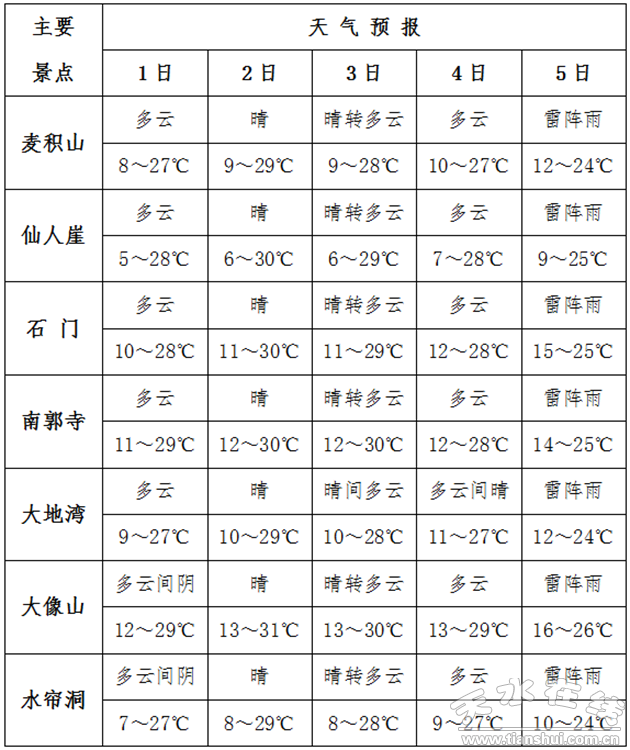 二、主要景點預(yù)報