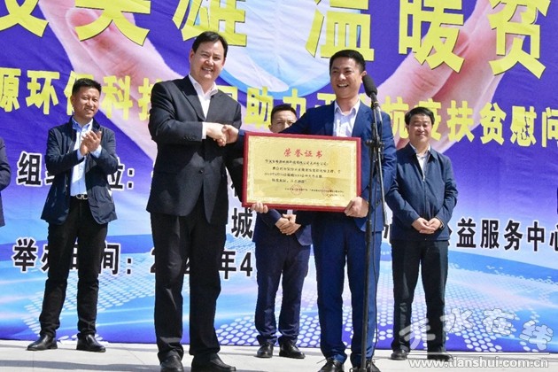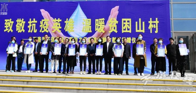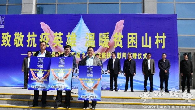 儀式上,寧波百路源環(huán)?萍脊緸槲沂32名援鄂工作者每人發(fā)放慰問(wèn)品凈水器一臺(tái),為秦州區(qū)、麥積區(qū)、甘谷縣貧困山區(qū)村委會(huì)、學(xué)校和有關(guān)公共服務(wù)組織捐贈(zèng)1000臺(tái)“天湖情”中央軟水機(jī),共計(jì)價(jià)值347萬(wàn)多元。同時(shí)以創(chuàng)建全國(guó)文明城市、創(chuàng)建節(jié)水型城市為契機(jī),聘請(qǐng)32名抗疫英雄為我市節(jié)能宣傳形象大使,并頒發(fā)了聘書(shū)。