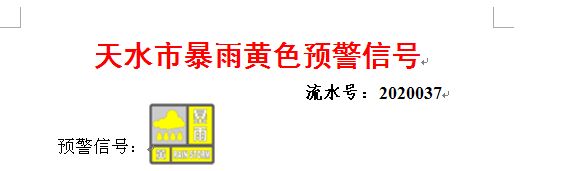 天水市氣象臺2020年5月6日20時30分發(fā)布暴雨黃色預(yù)警信號: