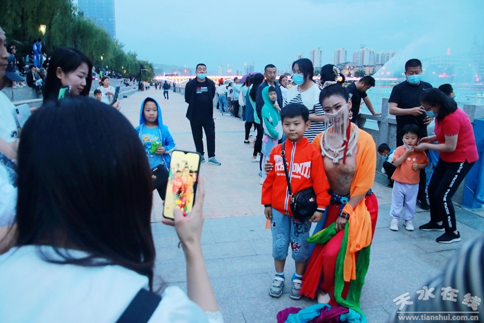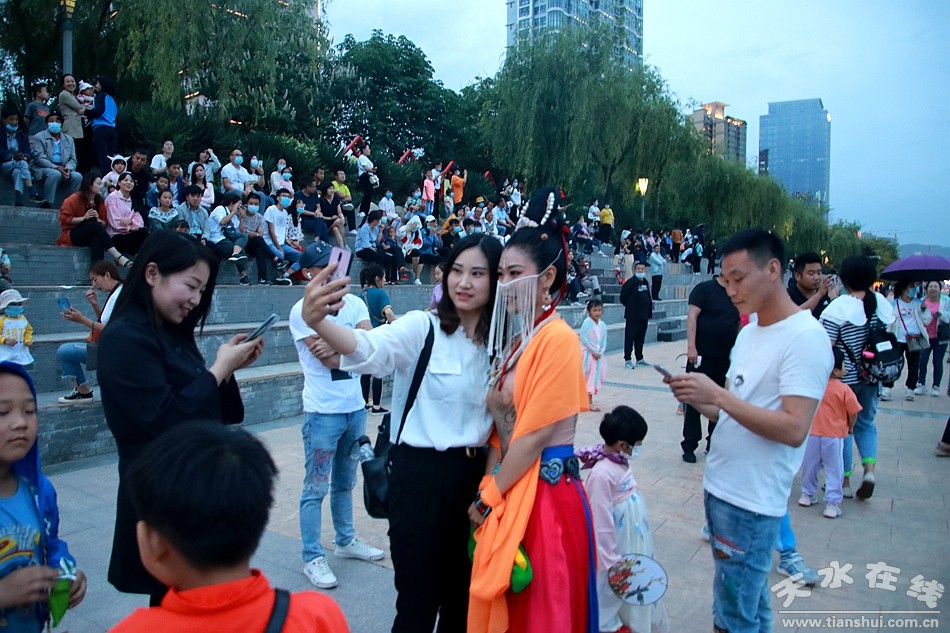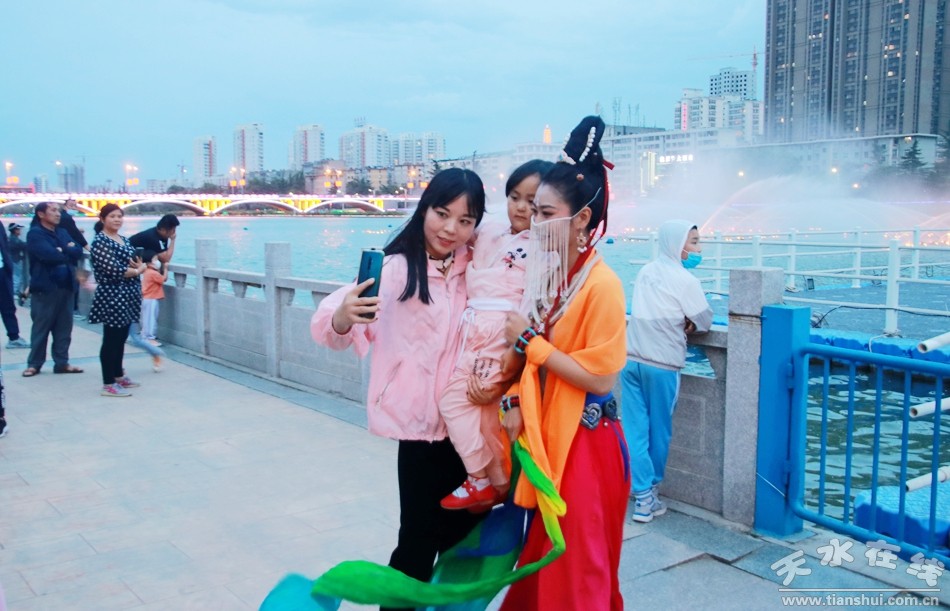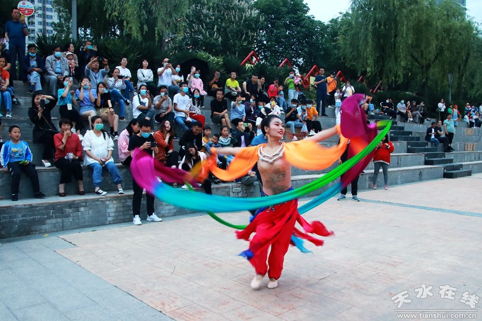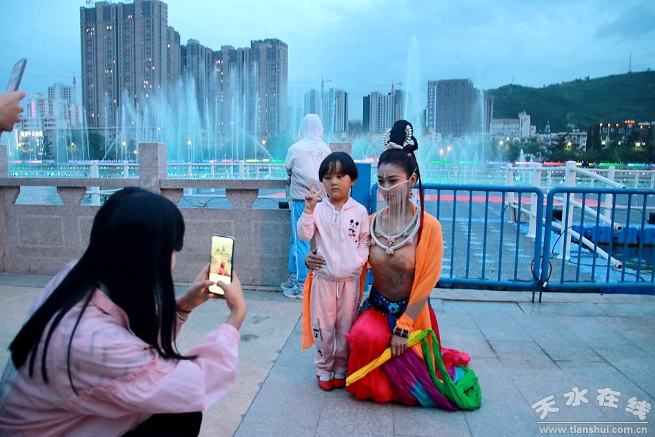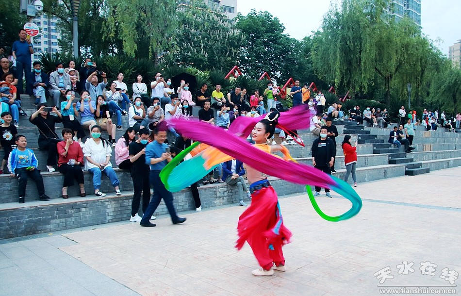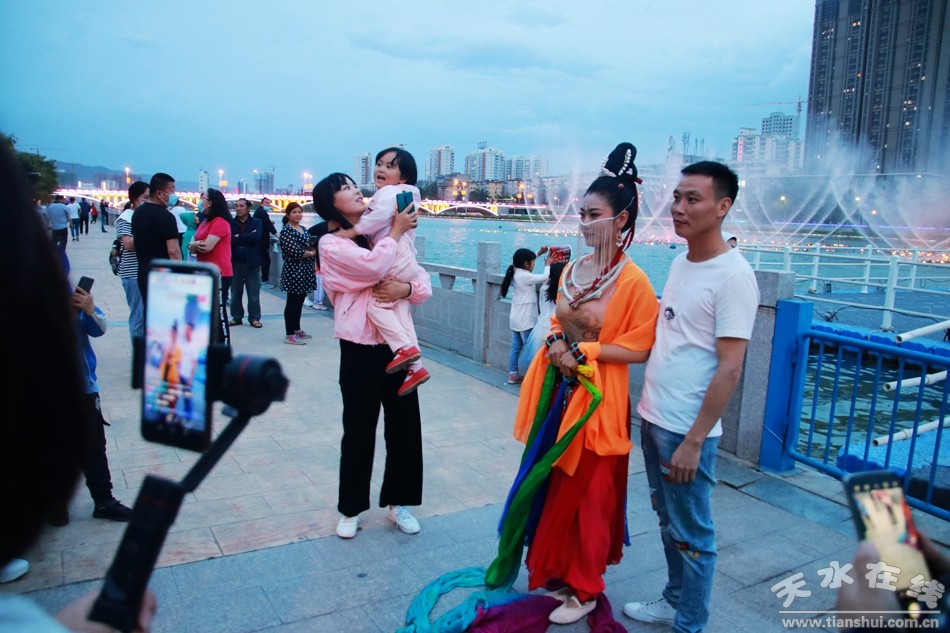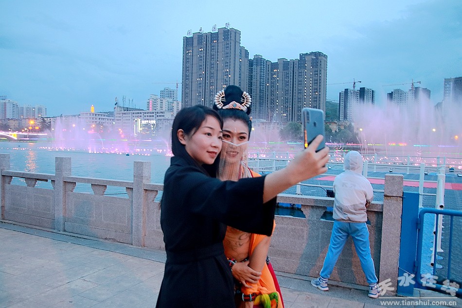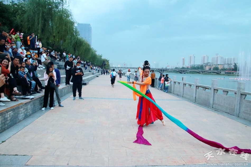 5月30日晚8時,由天水湖管理處和天水在線根據(jù)“麥積飛天”舞蹈和“大美天水”音樂噴泉特效專門設(shè)計并聯(lián)合推出的““大美天水+麥積飛天”音樂噴泉在天水湖進行第四場演出,這也是天水湖音樂噴泉2020年的第八場演出。