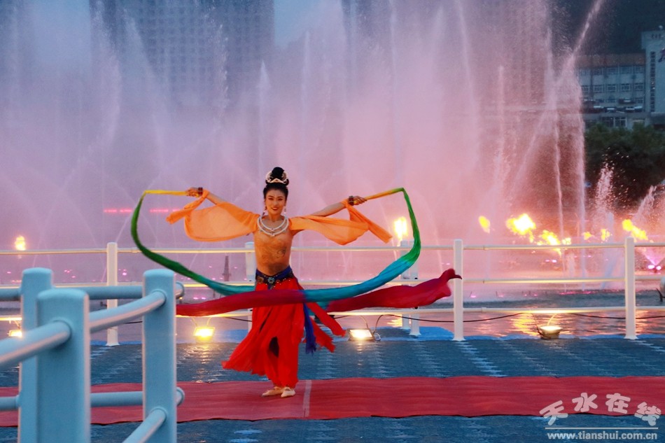 (“大美天水+麥積飛天”音樂噴泉第四場演出掠影)