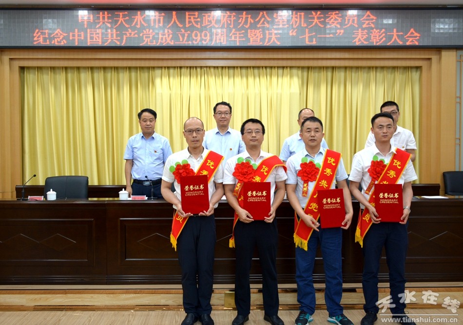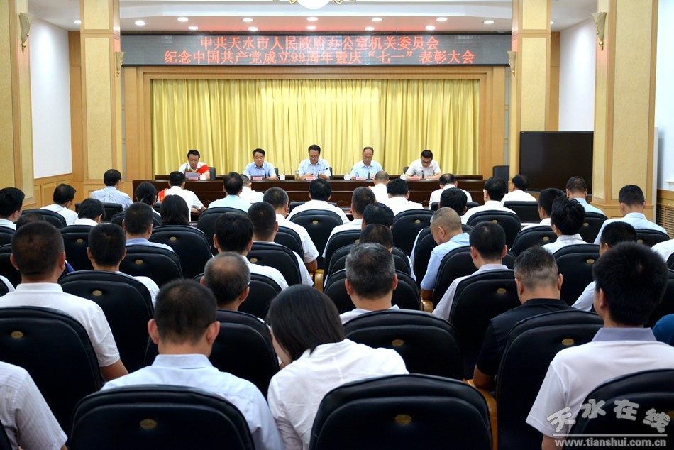 7月1日,中共天水市人民政府辦公室機關委員會召開紀念中國共產(chǎn)黨成立99周年暨慶“七一”表彰大會,共同回顧黨的光輝歷程,緬懷黨的豐功偉績,表彰先進黨支部和優(yōu)秀共產(chǎn)黨員。市委常委、副市長景丹,市政府黨組成員、秘書長、辦公室機關黨委書記王永祥以及機關全體黨員參加會議。