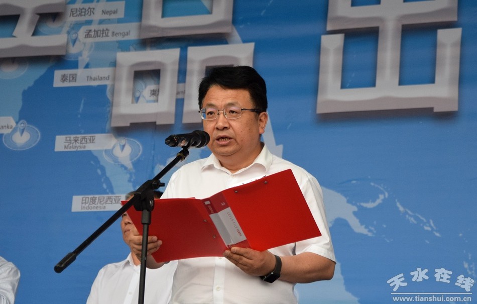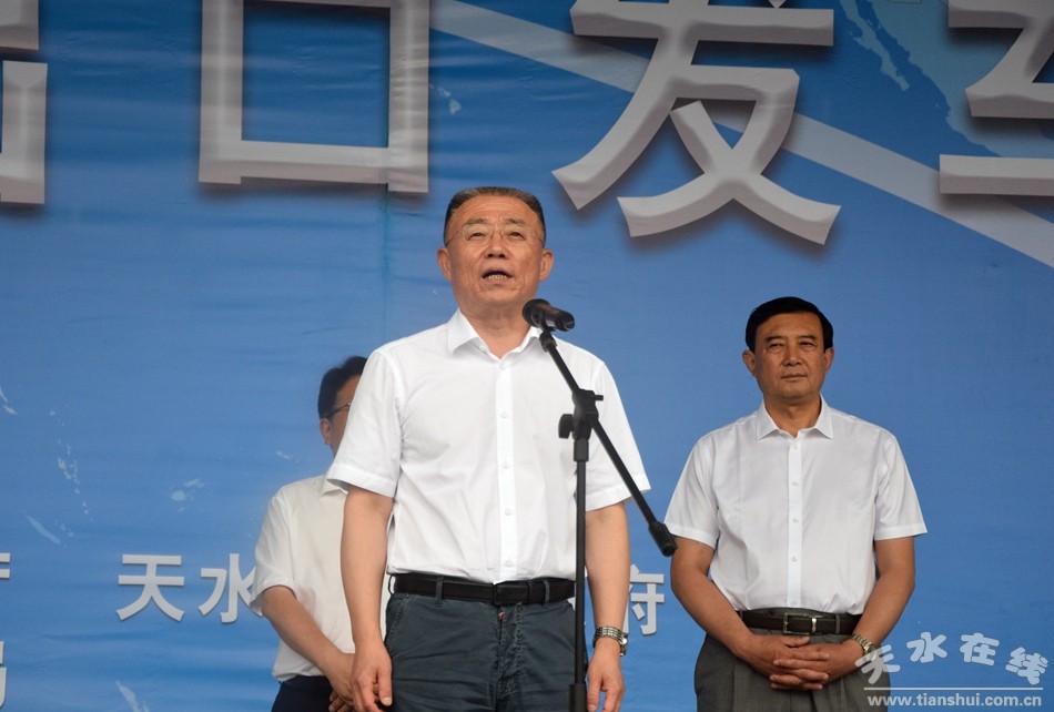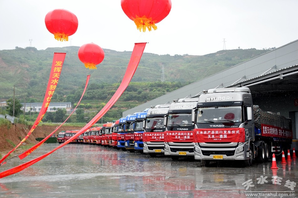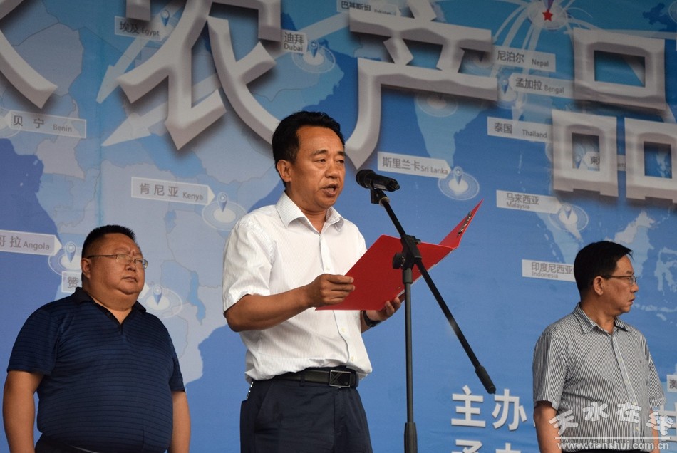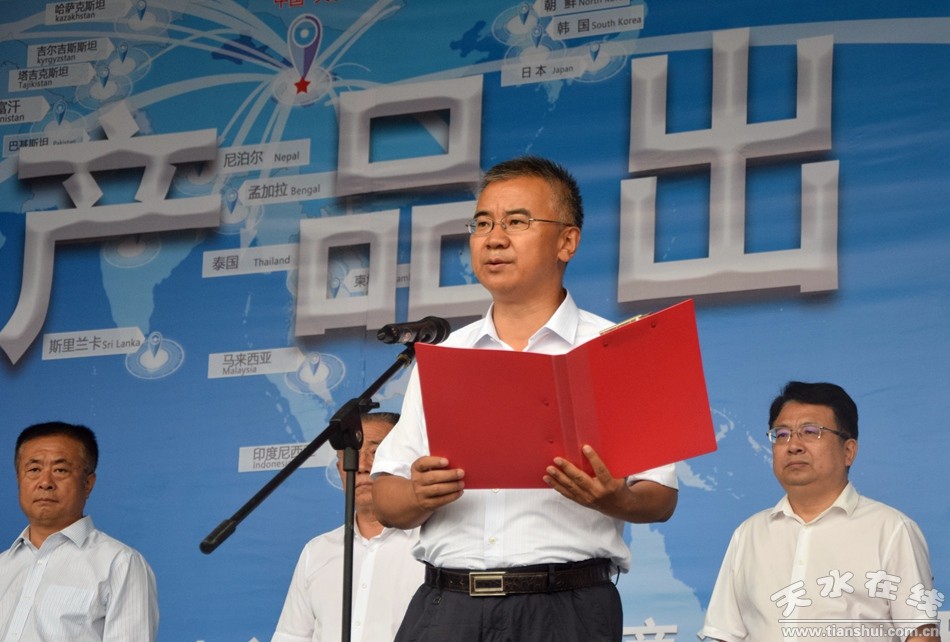 (省政協(xié)副主席、市委書記王銳宣布天水農(nóng)產(chǎn)品出口發(fā)車儀式啟動)