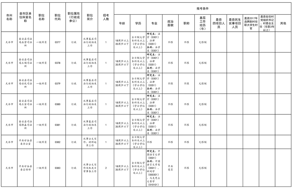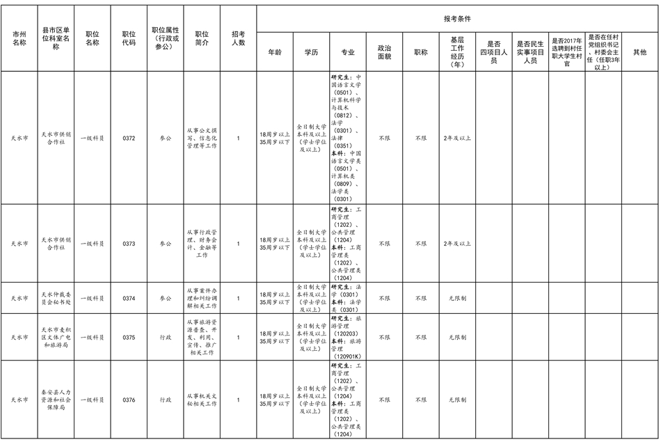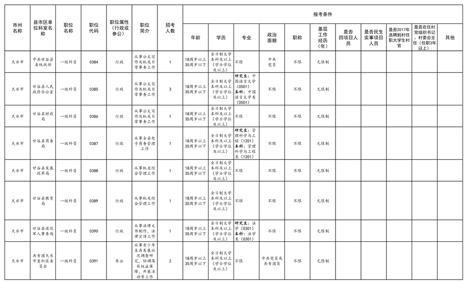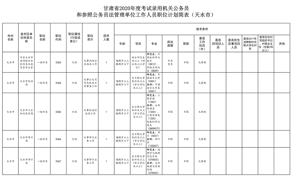 天水市2020年度考試錄用機關(guān)公務員和參照公務員法管理單位工作人員公告