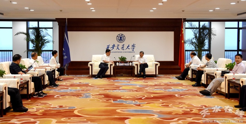 中國西部科技創(chuàng)新港由西安交通大學(xué)與西咸新區(qū)聯(lián)合建設(shè),是集“校區(qū)、園區(qū)、社區(qū)”為一體的綠色智慧學(xué)鎮(zhèn)。在創(chuàng)新港考察期間,西安交通大學(xué)校長王樹國會見了王軍一行。王樹國說,圍繞著加快西部大開發(fā)、“一帶一路”建設(shè)、加速東西部均衡發(fā)展,西安交大在渭水之濱建成了中國西部科技創(chuàng)新港。天水與西安地緣相近、人文相通,進行跨區(qū)域交流更為便利,希望與天水市進一步加強交流互訪,積極拓展校地合作,為天水發(fā)展貢獻力量。王軍簡要介紹了天水經(jīng)濟社會發(fā)展情況,他說,當(dāng)前,天水正深入貫徹落實習(xí)近平總書記視察甘肅重要講話和指示精神,搶抓新一輪西部大開發(fā)、“一帶一路”和關(guān)中平原城市群建設(shè)等重大機遇,加快打造 “三城兩地一樞紐”目標,迫切需要知識經(jīng)濟和高端創(chuàng)新人才的強力推動。西安交大有著雄厚的教學(xué)科研實力和光榮的愛國主義傳統(tǒng),從無私奉獻的“西遷精神”到充滿生機活力的科技創(chuàng)新港,都深深感染和啟發(fā)著我們。希望雙方今后在人才培養(yǎng)交流、科技創(chuàng)新等方面深化合作往來,助推天水實現(xiàn)高質(zhì)量發(fā)展。