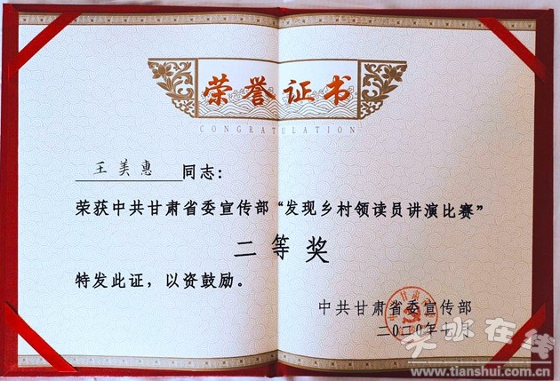7月15日,省委宣傳部在蘭州舉辦了2020年“發(fā)現(xiàn)鄉(xiāng)村領(lǐng)讀員”全省農(nóng)家書屋閱讀講演比賽。這次活動緊扣“決勝全面小康、決勝脫貧攻堅”主題,以“講小康故事、講脫貧故事”為基本內(nèi)容,通過農(nóng)民演講的表現(xiàn)形式,讓農(nóng)民講述讀書、用書的經(jīng)歷、體會和感受,展現(xiàn)農(nóng)家書屋給農(nóng)村帶來的變化,給農(nóng)民帶來的實惠,體現(xiàn)農(nóng)家書屋在脫貧攻堅中的“扶智、扶志”作用。在全省14個市州30名選手的角逐中,我市推選的兩名選手,甘谷縣大像山鎮(zhèn)東關(guān)村農(nóng)家書屋管理員王苗、甘谷縣金山小學(xué)圖書室管理員王美惠分別獲得第一名、第二名的好成績,被省委宣傳部聘為“全省新時代鄉(xiāng)村閱讀季活動鄉(xiāng)村領(lǐng)讀員”。我市獲得全省優(yōu)秀組織獎。