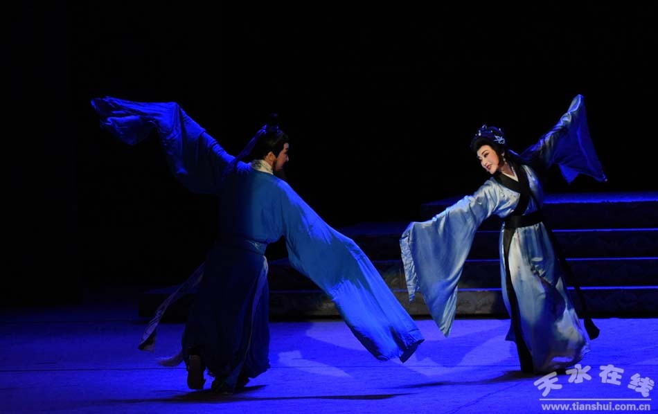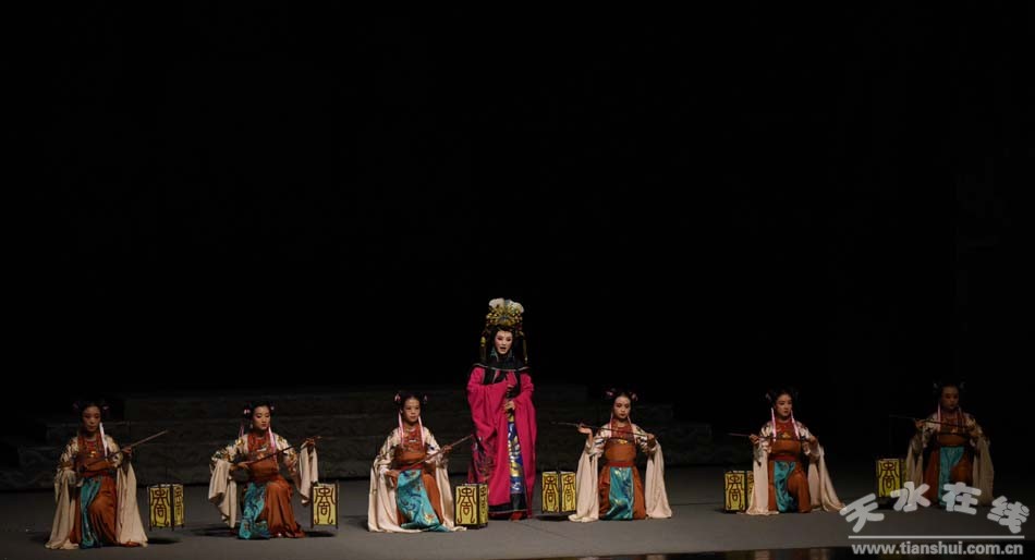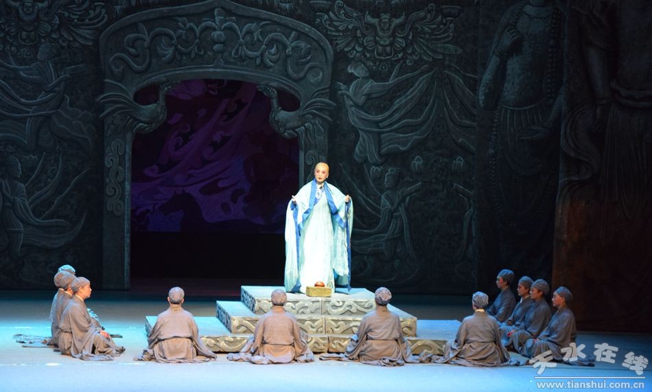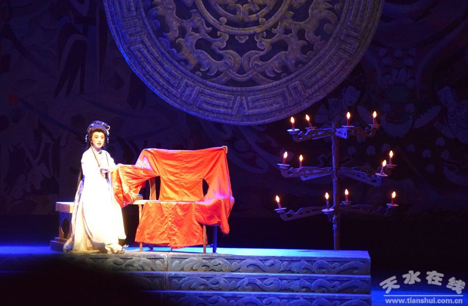 當(dāng)晚,由天水市西秦腔研究院按照“戲曲+旅游”融合發(fā)展模式,在原大型歷史秦劇《麥積圣歌》基礎(chǔ)上改編的旅游版《麥積圣歌》進(jìn)行了首演。旅游版《麥積圣歌》由袁丫丫(飾西魏皇乙弗氏)、劉維新(飾皇甫鴻)主演,由導(dǎo)演劉維新根據(jù)“戲曲+旅游”的特點(diǎn)進(jìn)行了重新打造、重新編排。