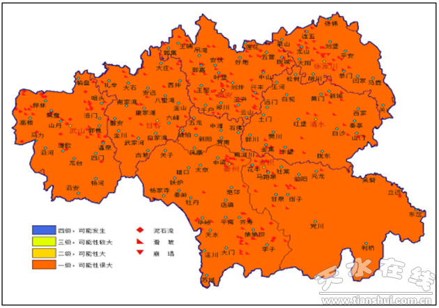 預(yù)計(jì)14~17日,全市有持續(xù)性降雨天氣,其中秦州區(qū)、麥積區(qū)、清水縣、張家川縣、秦安縣的大部分鄉(xiāng)鎮(zhèn)累積雨量將超過(guò)100毫米,秦州區(qū)南部、麥積區(qū)中部和南部部分鄉(xiāng)鎮(zhèn)將超過(guò)200毫米。由于前期全市已出現(xiàn)多場(chǎng)次暴雨天氣,土壤含水量已達(dá)飽和,發(fā)生地質(zhì)災(zāi)害的氣象風(fēng)險(xiǎn)很高(紅色預(yù)警)。請(qǐng)各縣區(qū)做好監(jiān)測(cè)預(yù)警,加強(qiáng)崩塌、滑坡、泥石流等地質(zhì)災(zāi)害的應(yīng)對(duì)防范工作。