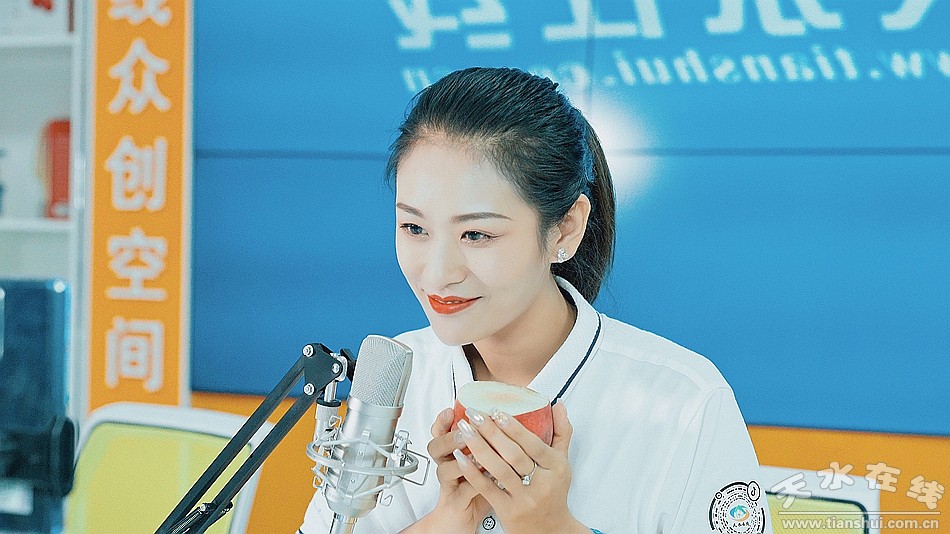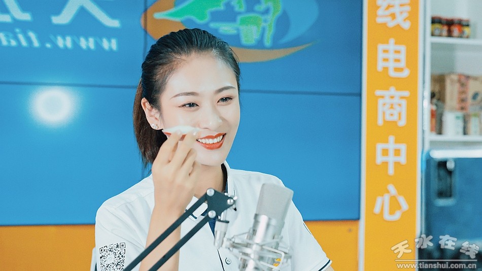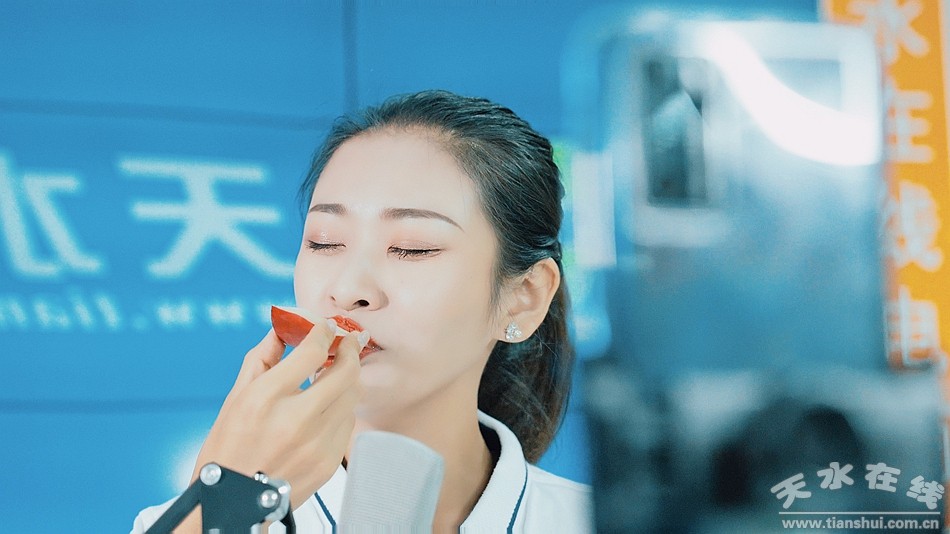 (天水在線主播萌萌在天水在線抖音直播間直播吃“桃后”)