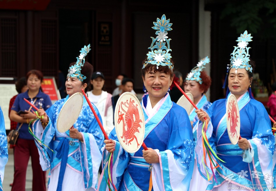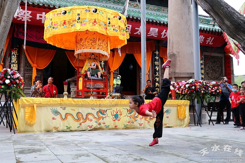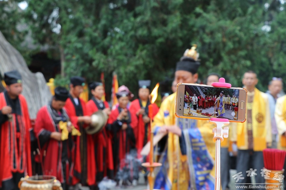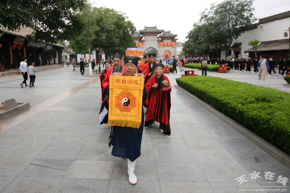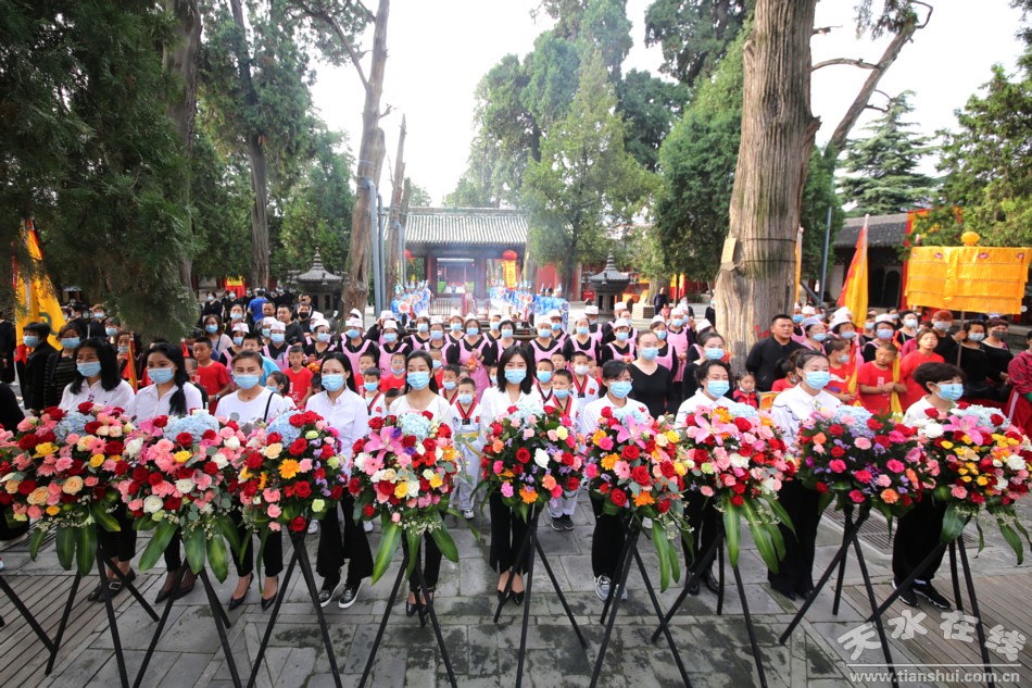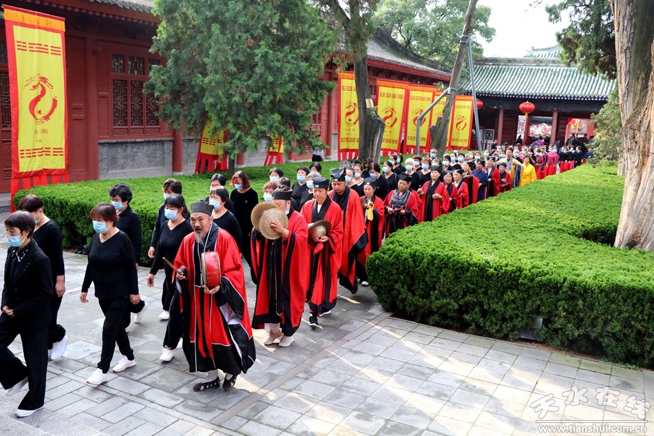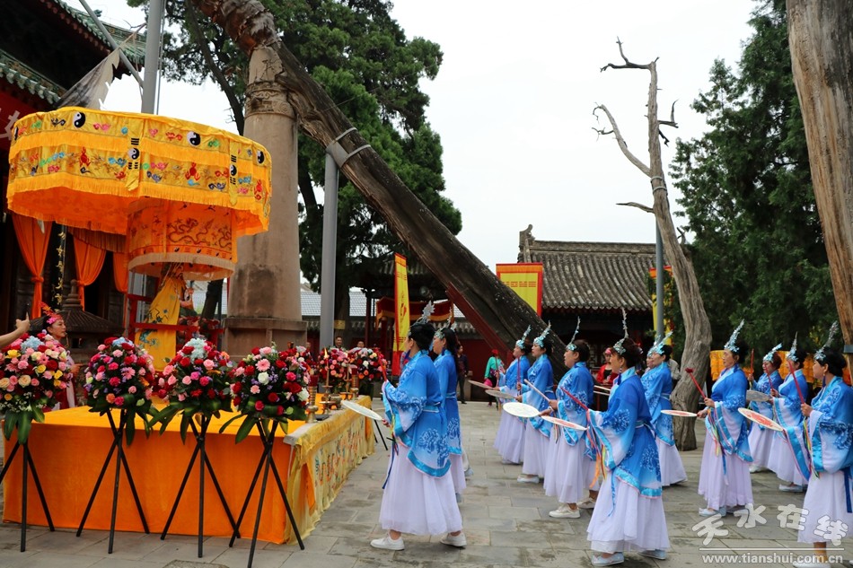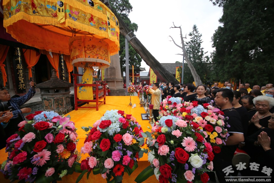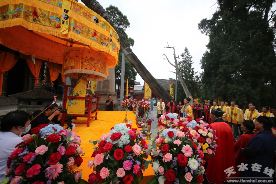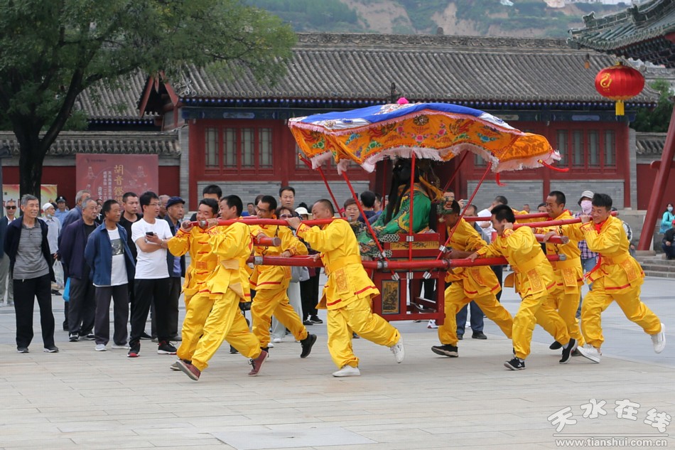 9月5日上午,庚子(2020)年秋祭中華人文始祖太昊伏羲氏典禮迎神儀式在伏羲廟先天殿月臺(tái)舉行。8:45分,黑爺行像起駕伏羲廟先天殿恭迎伏羲圣像。