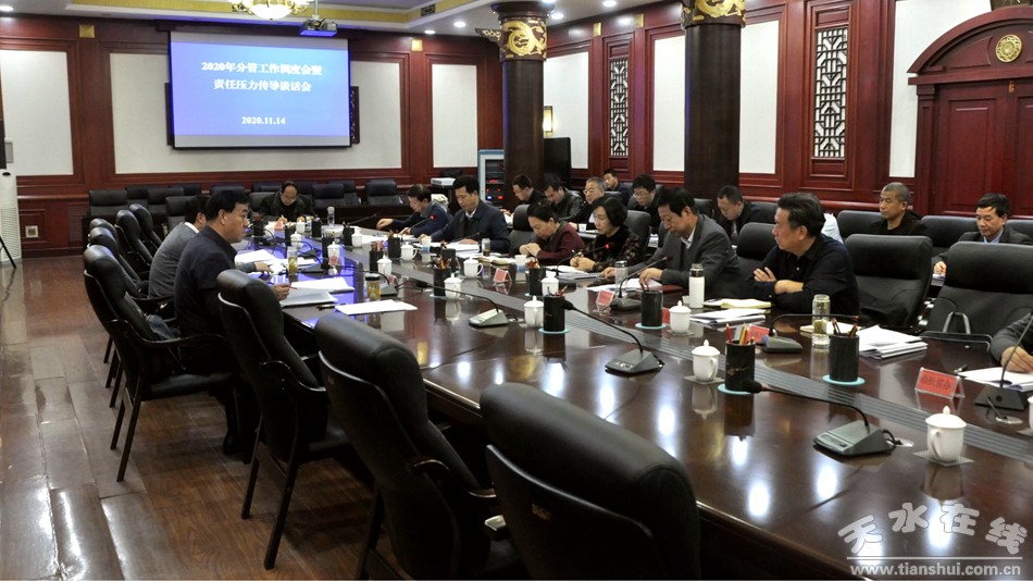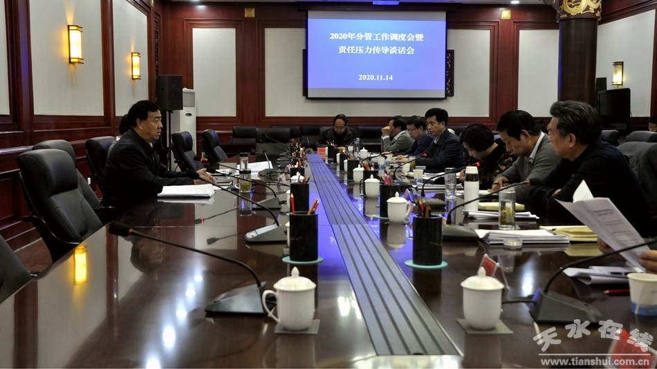 11月14日,天水市政府副市長(zhǎng)逯克宗組織召開2020年分管工作調(diào)度會(huì)暨責(zé)任壓力傳導(dǎo)談話會(huì),分析研究面臨的形勢(shì)和工作中存在的困難問題,傳導(dǎo)責(zé)任壓力,再鼓干勁,再添措施,全力沖刺決戰(zhàn)全年各項(xiàng)目標(biāo)任務(wù)。