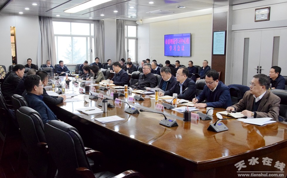 11月25日,天水市委書記王銳主持召開市委理論學(xué)習(xí)中心組學(xué)習(xí)會議。市領(lǐng)導(dǎo)王軍、蔣曉強(qiáng)、趙衛(wèi)東、王國先、蒲軍、郝覺民、張建杰、賈義翔、王燕、景丹、溫利平參加學(xué)習(xí)。