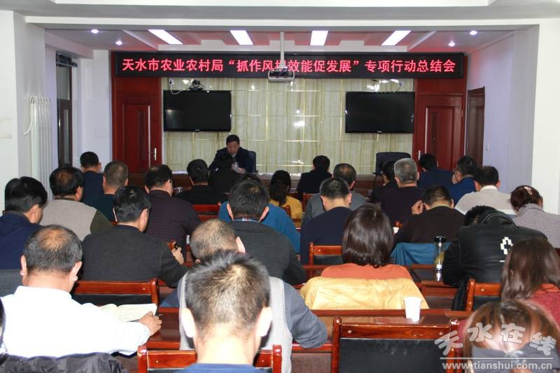 12月1日下午,天水市農(nóng)業(yè)農(nóng)村局召開“抓作風(fēng)提效能促發(fā)展”專項行動總結(jié)會,局機關(guān)全體干部職工、局屬單位負(fù)責(zé)人共60余人參加會議。